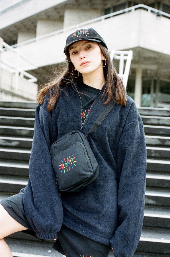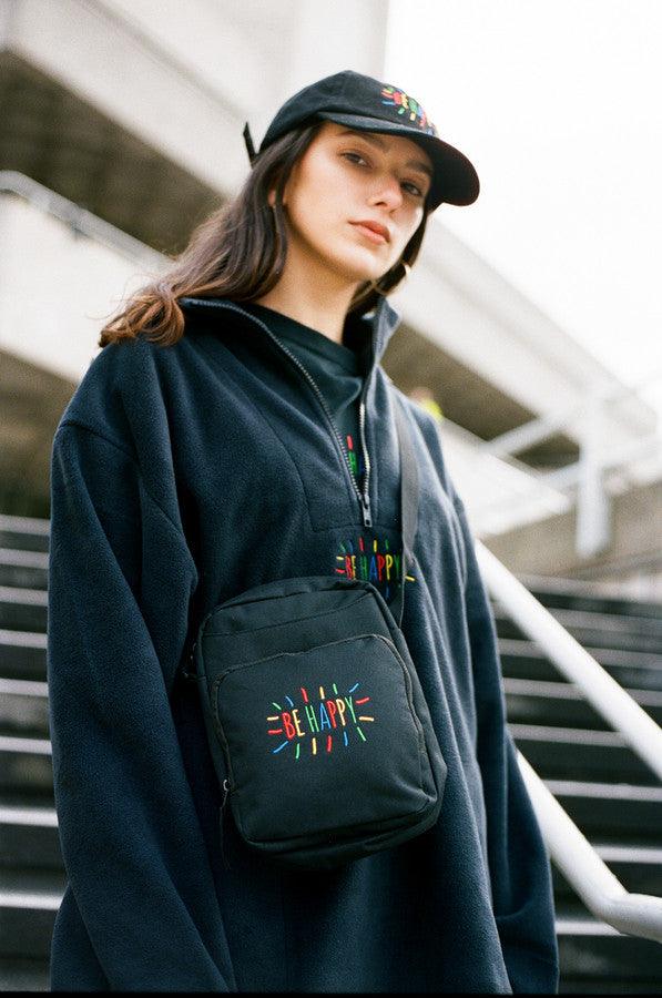 Black Fleece With Be Happy Embroidered Design