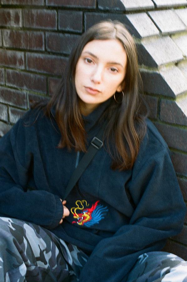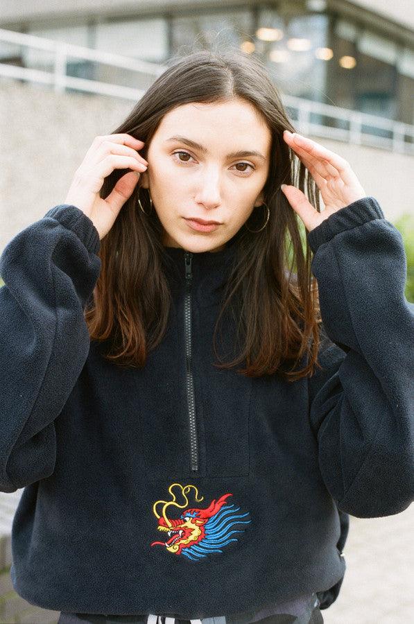 Black Fleece With Chinese Dragon Embroidery