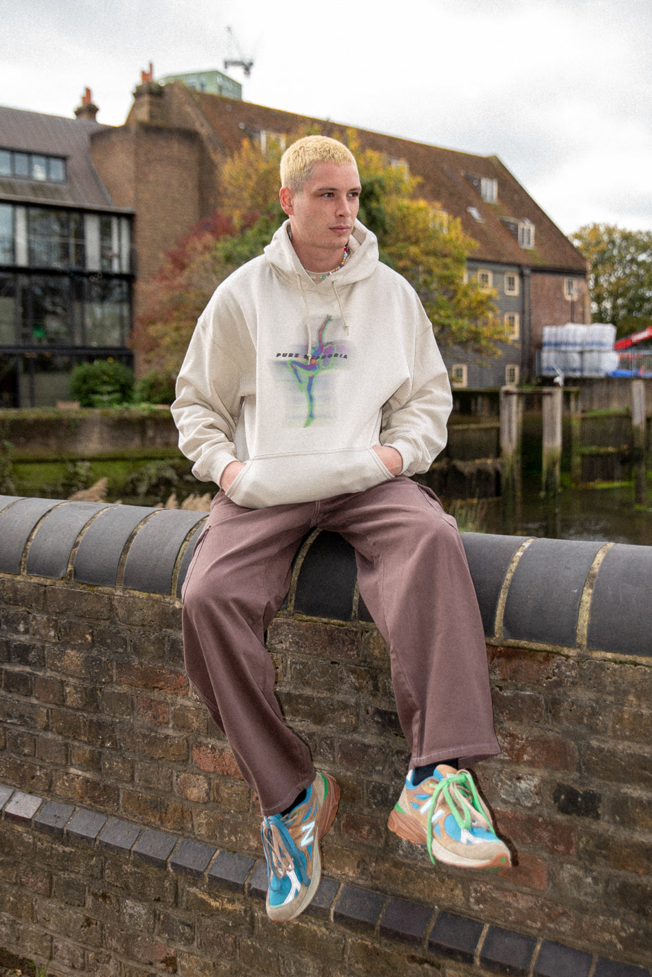 Hoodie in Sand With Pure Euphoria Print