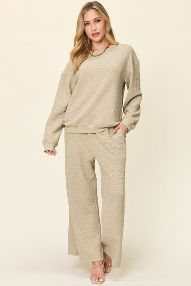 Double Take Full Size Texture Long Sleeve Top and Pants Set