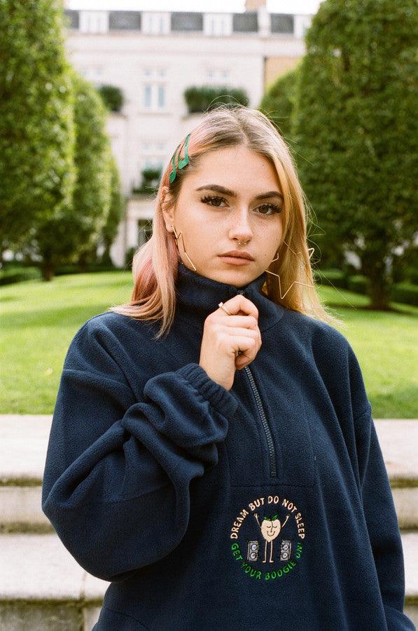 Fleece In Navy Pete The Peach Fruity Disco Raver Embroidery