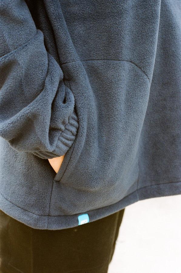 - Woven label details at bottom of fleece and inside the collar