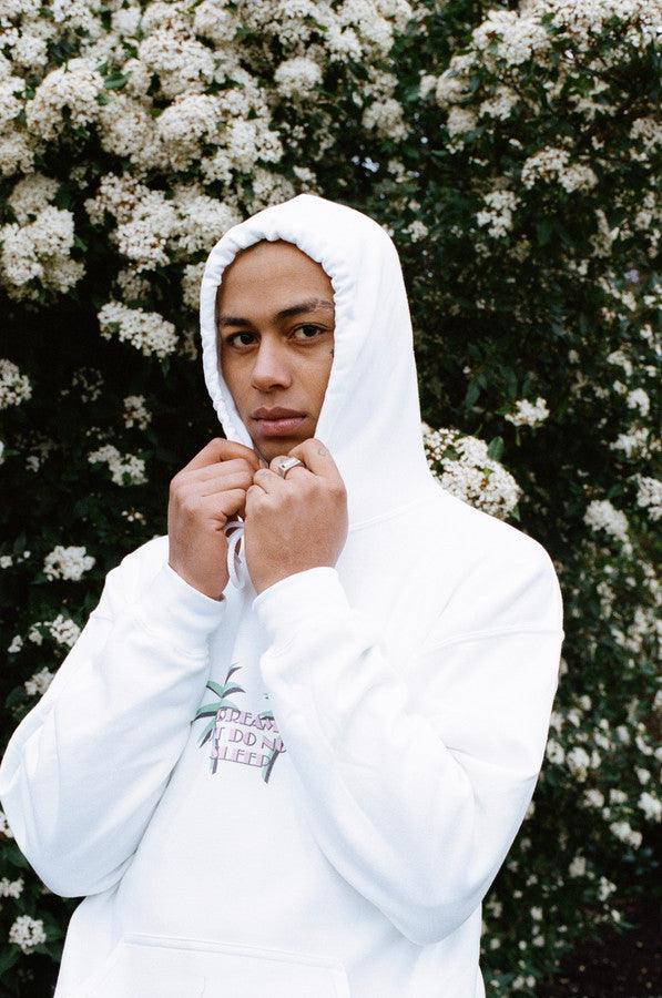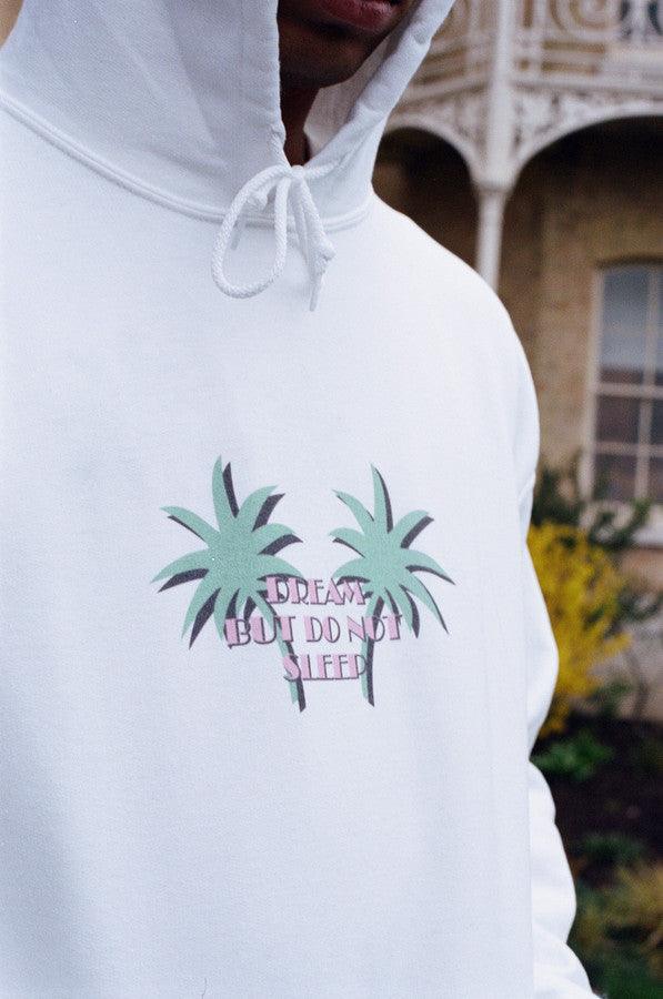 Hoodie In White With Tropical Palm Tree Print