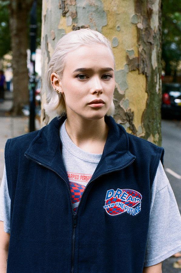 Navy Blue Fleece Gilet With Dream Into The Future Embroidery
