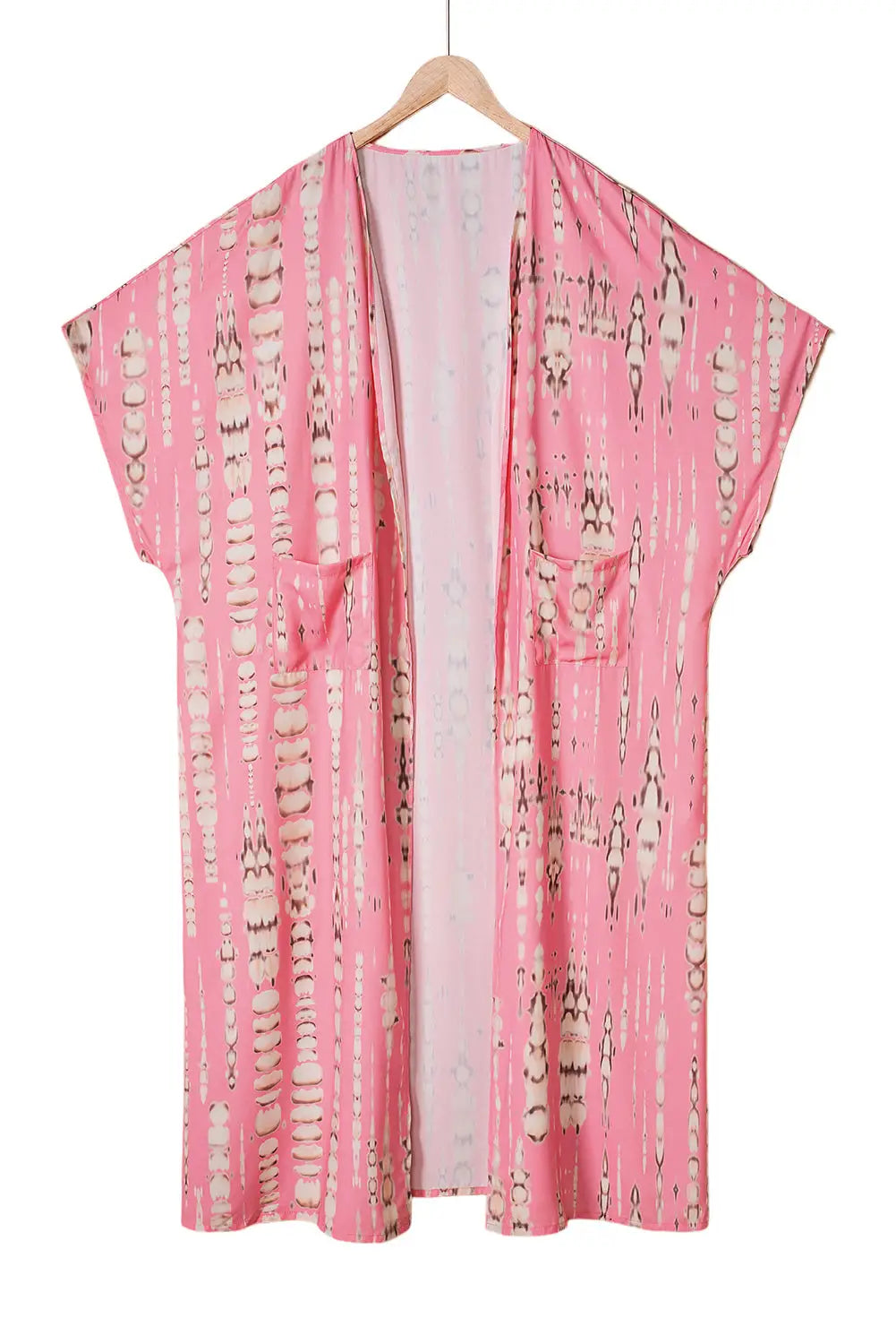 Pink Bohemian Tie Dye Oversize Long Kimono-9 Pink Bohemian Tie Dye Oversize Long Kimono-9