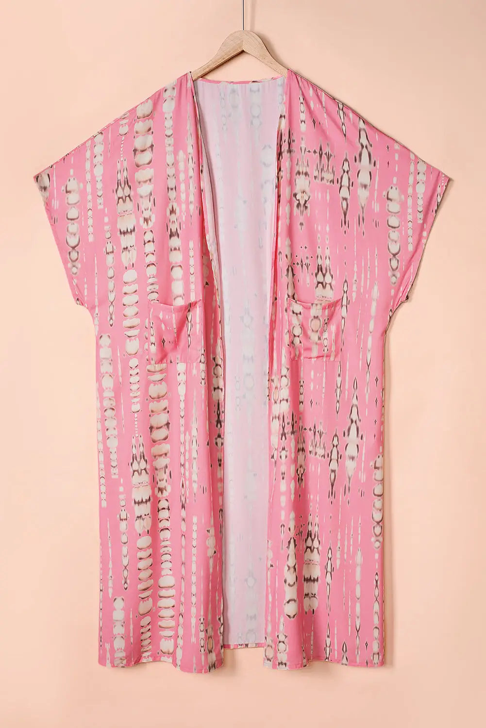 Pink Bohemian Tie Dye Oversize Long Kimono