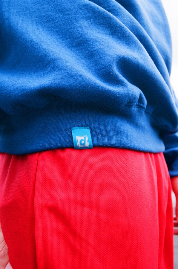 - Woven label details at bottom of sweatshirt and inside the collar