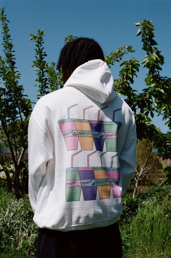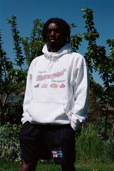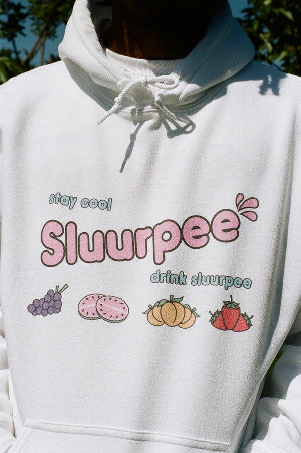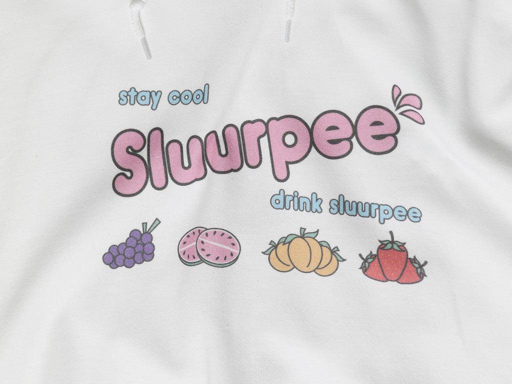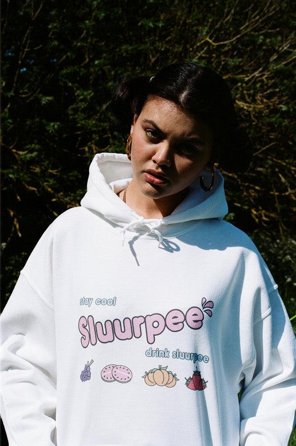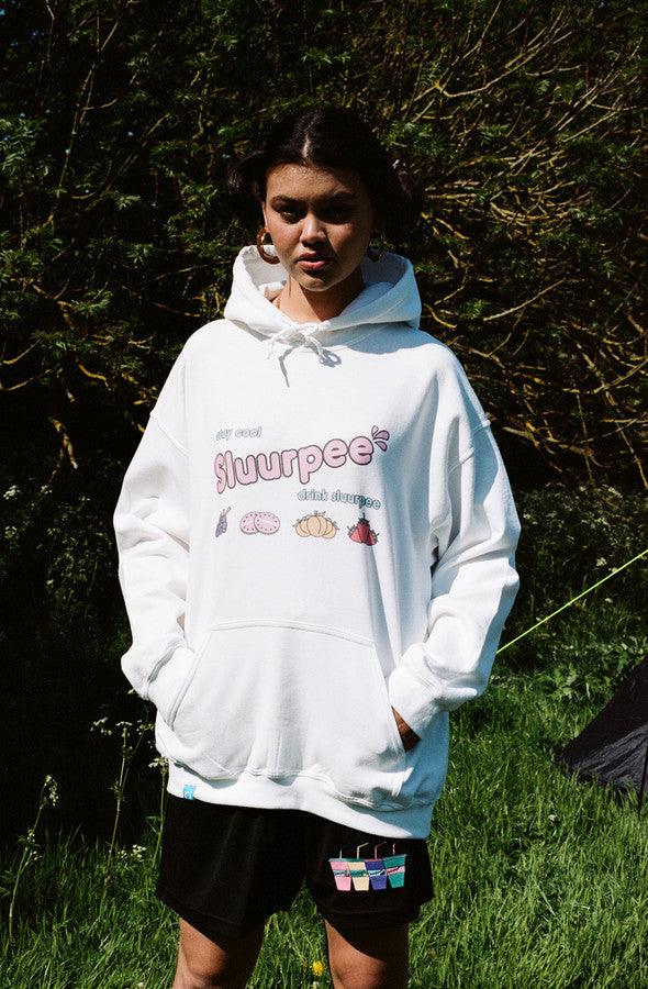 White Hoodie With Printed Sluurpee Design