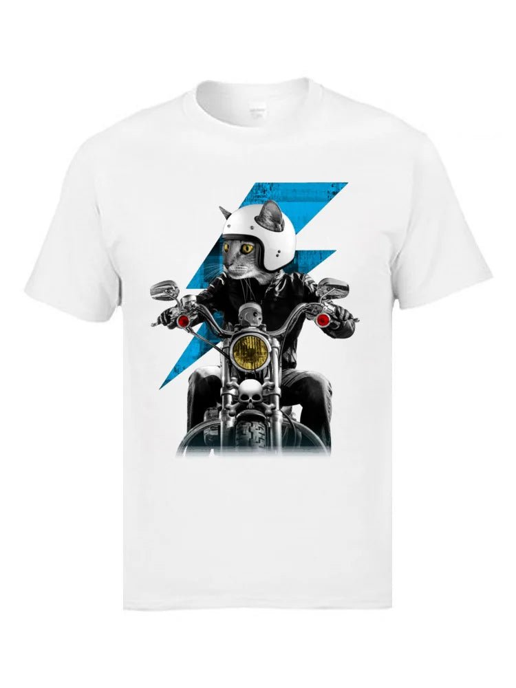 This cool t-shirt features a unique "One Piece Skull" biker cat design and is made with high-quality cotton fabric. The comfortable fit and short sleeves make it perfect for casual wear. Show off your style and love for cats with this edgy O-neck t-shirt.