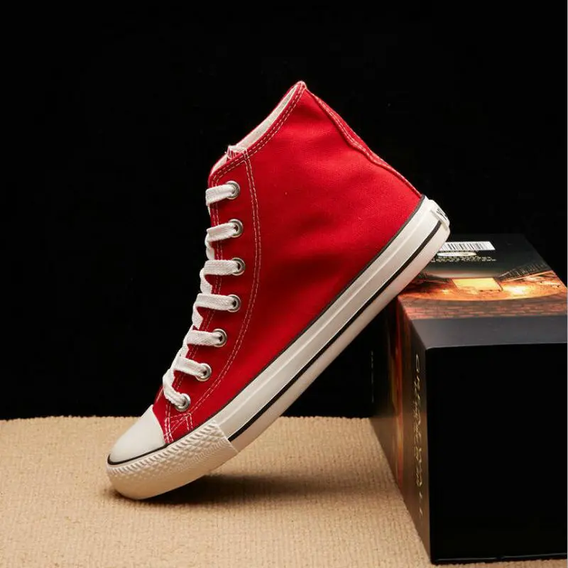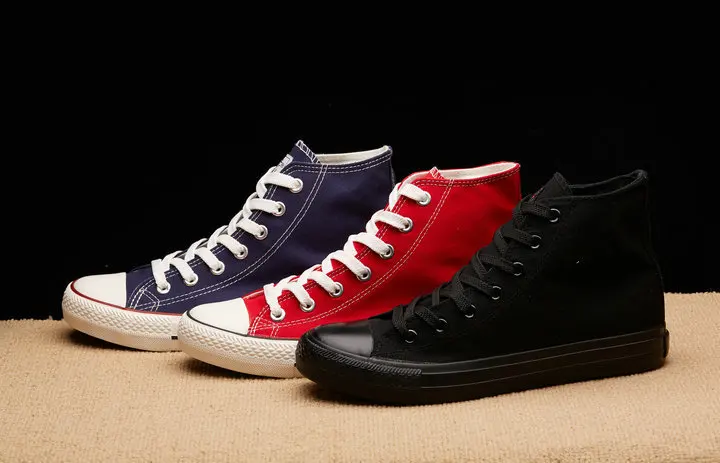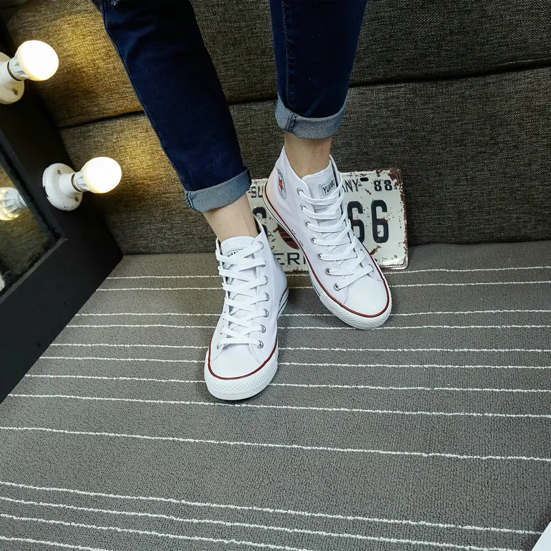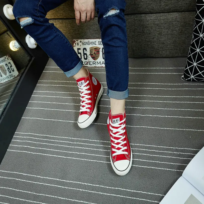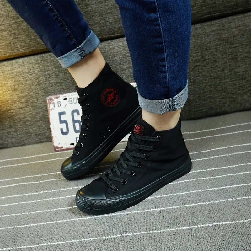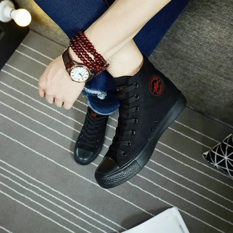 New Arrival Summer Fashion Men Flats Shoes All Black White Red Casual Shoes Mens Canvas Shoes Lace-Up High Top Shoes 699 - Street Rider Apparel