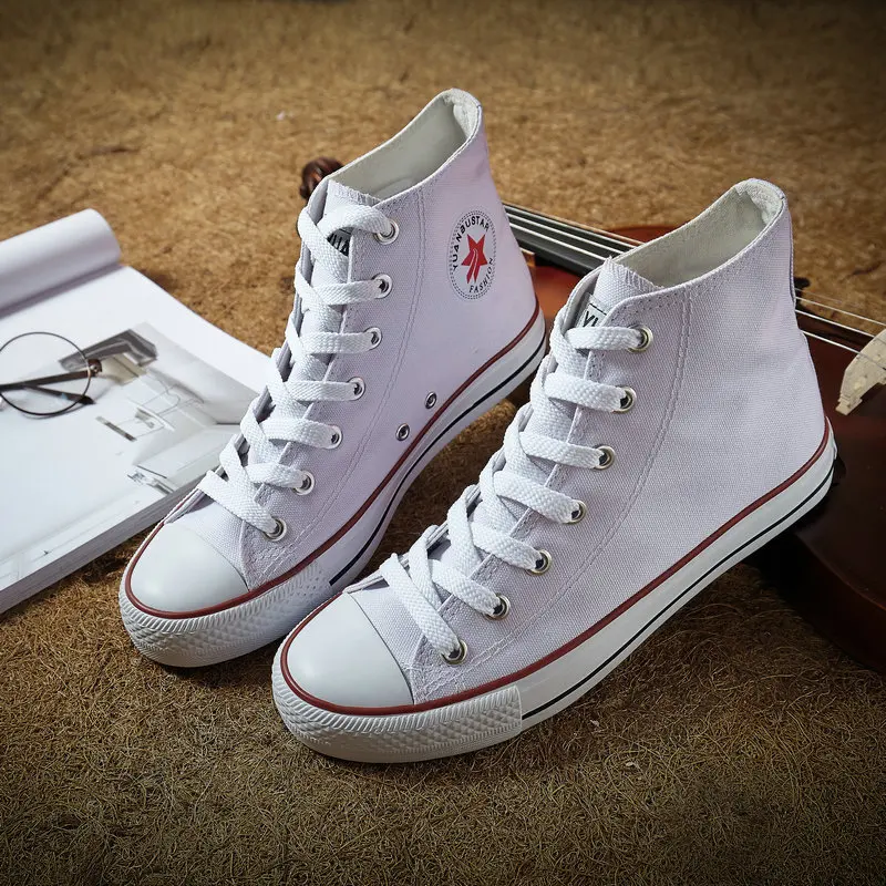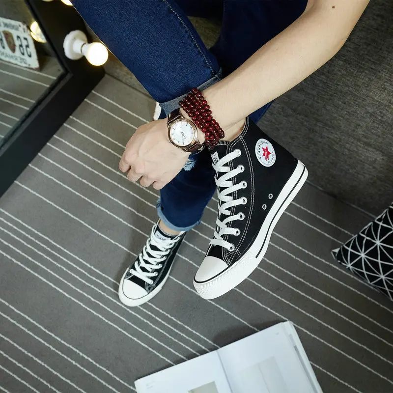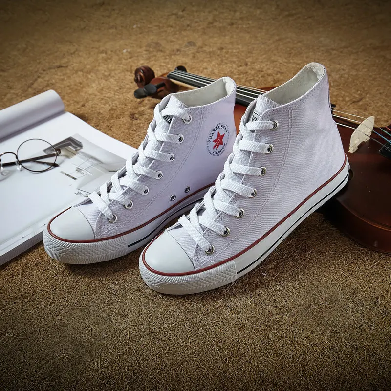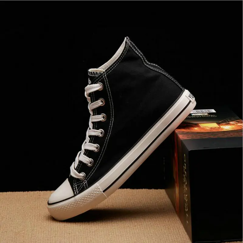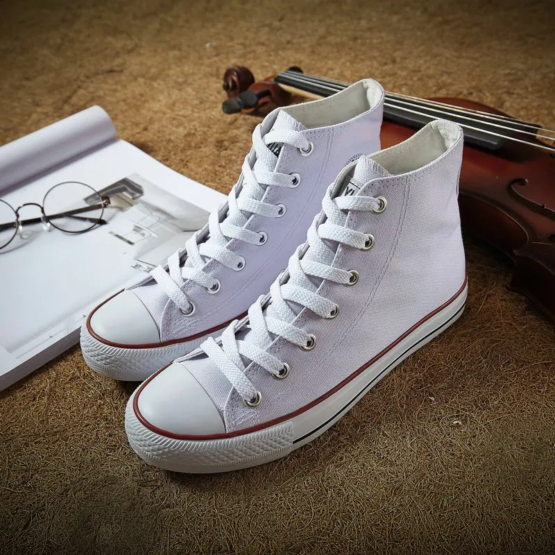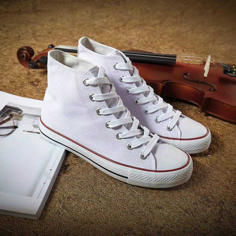 New Arrival Summer Fashion Men Flats Shoes All Black White Red Casual Shoes Mens Canvas Shoes Lace-Up High Top Shoes 699 - Street Rider Apparel