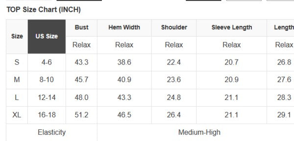 See size chart for approximate measurements