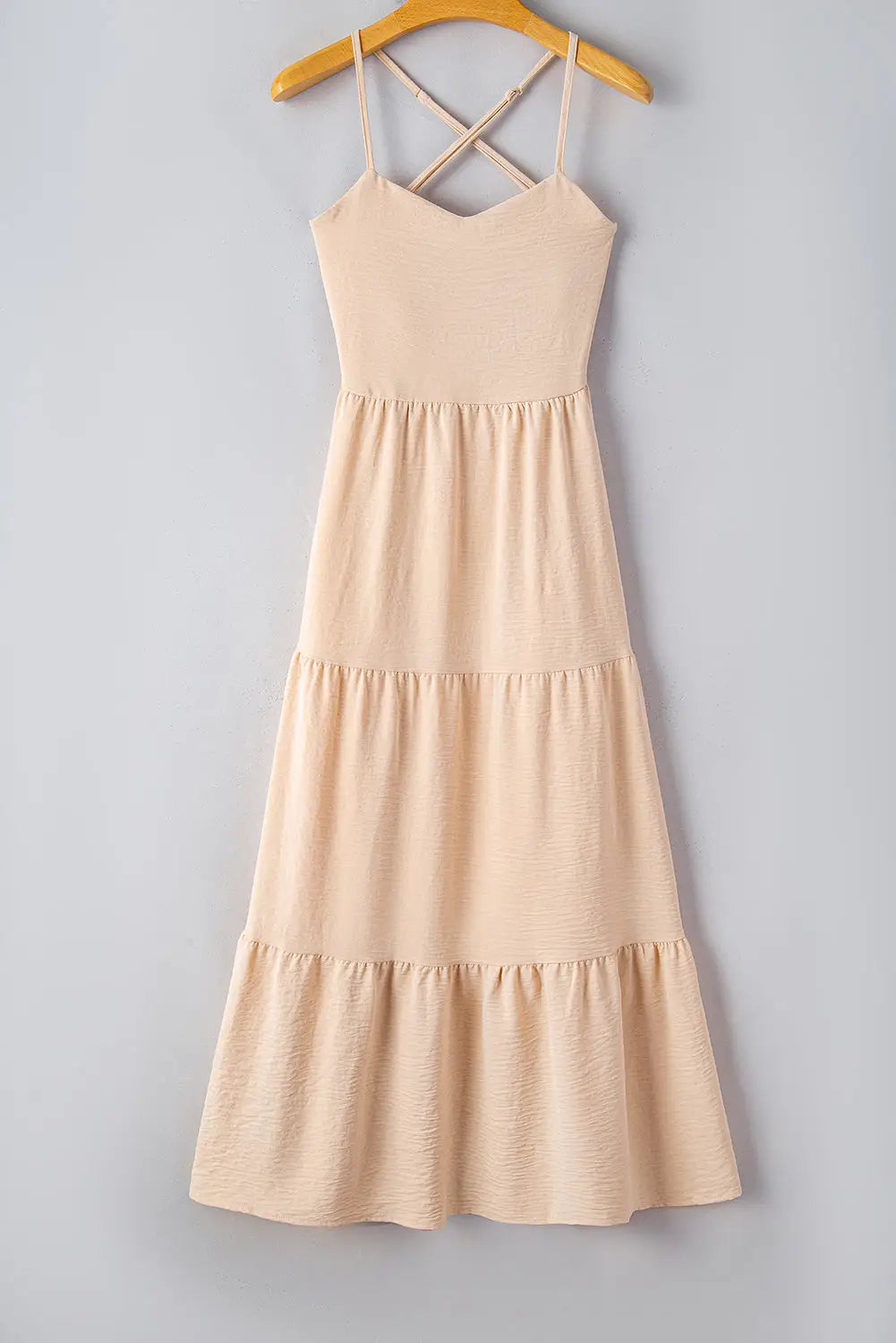 With its sleeveless and crossover backless designs, this dress is perfect for hot summer days