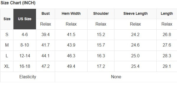 See size chart for approximate measurements
