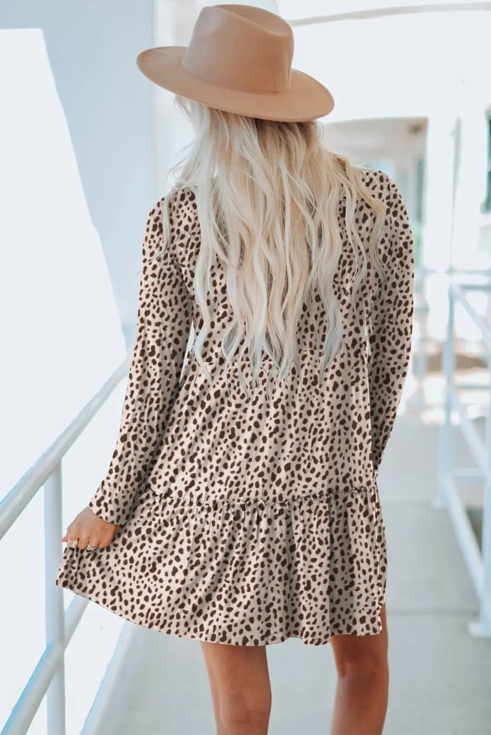 Leopard Animal Print Tiered Long Sleeve Dress