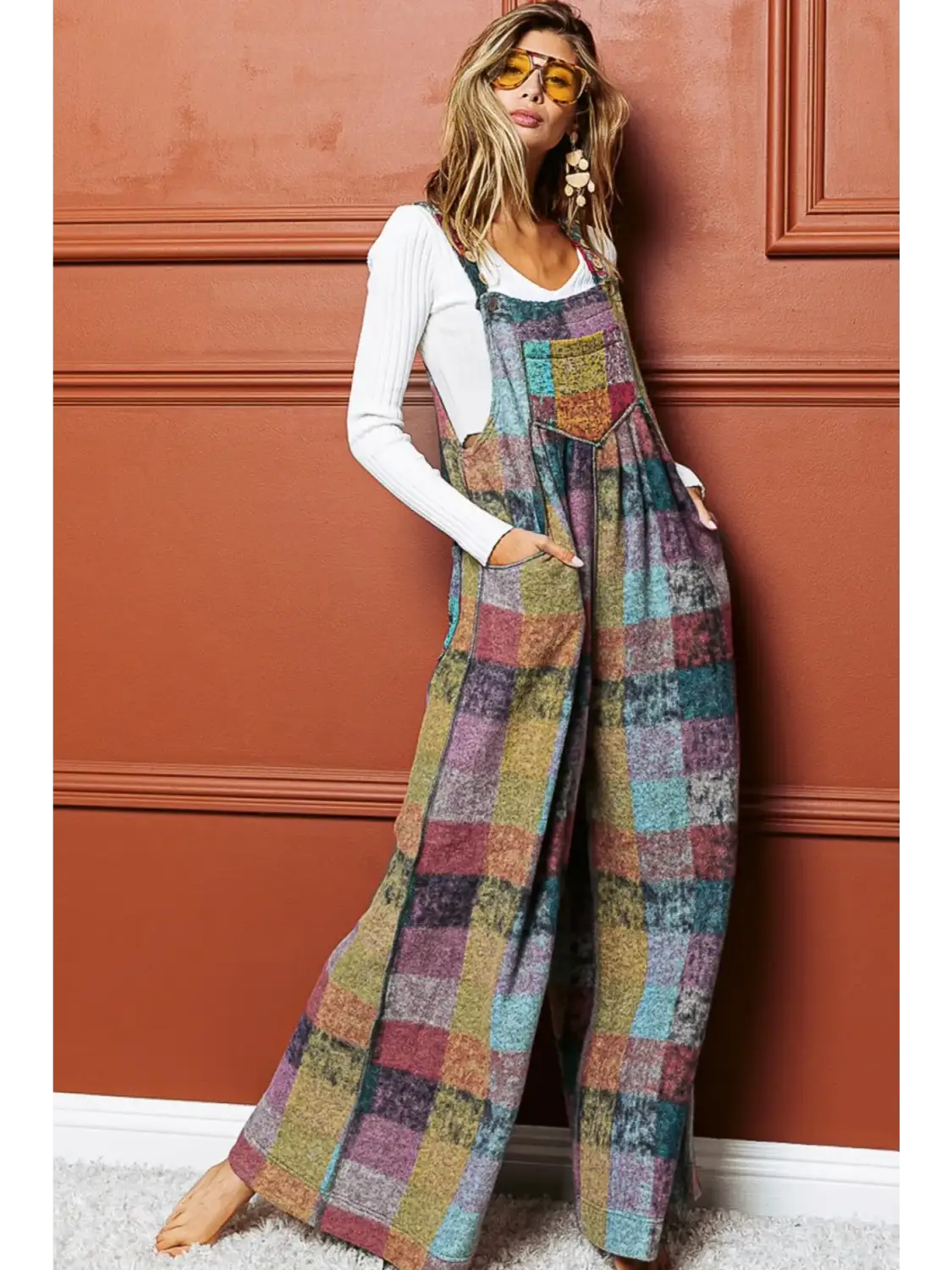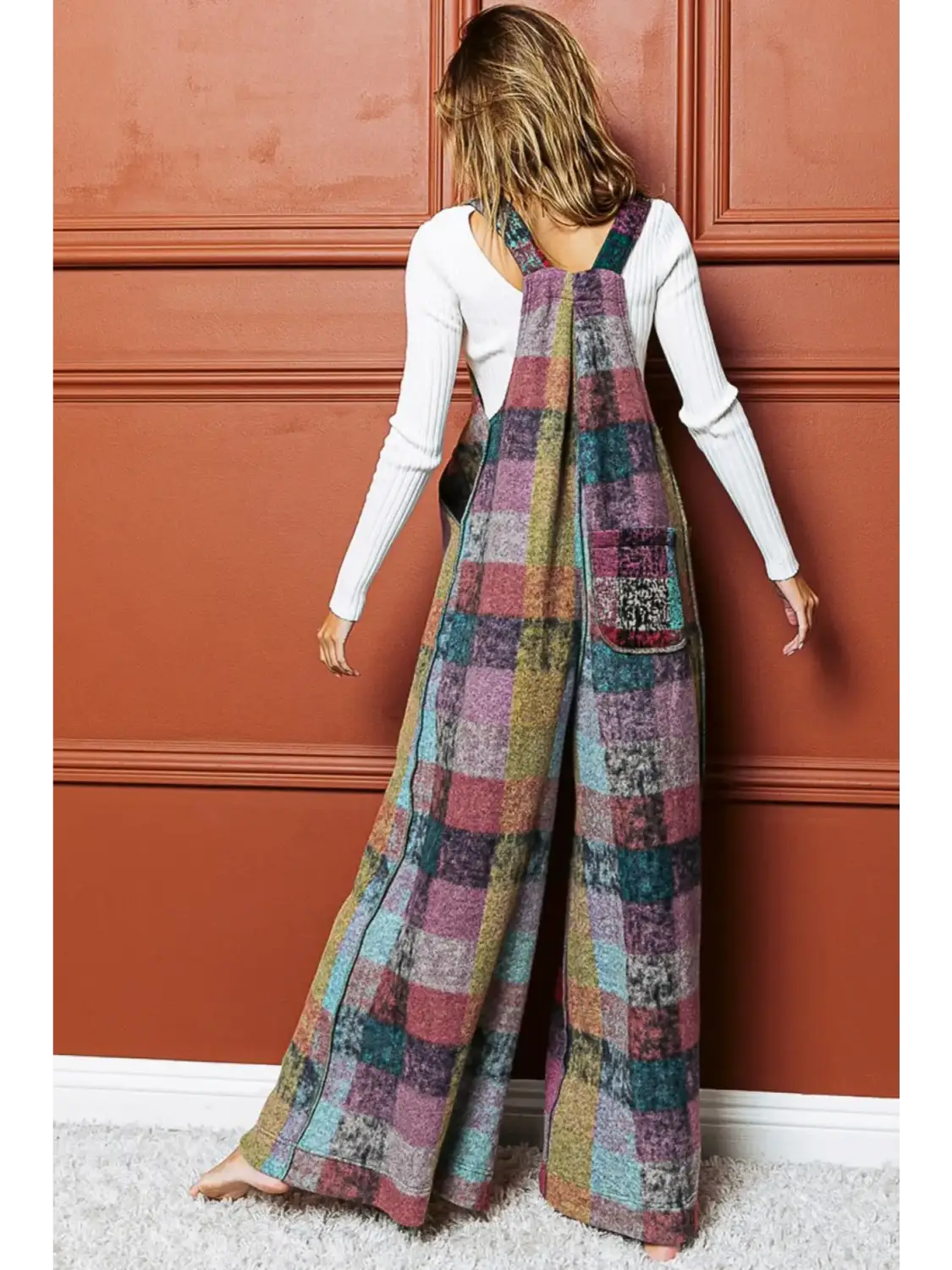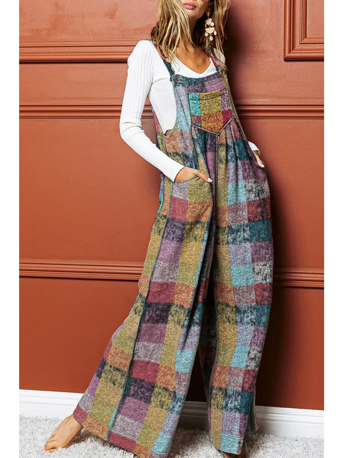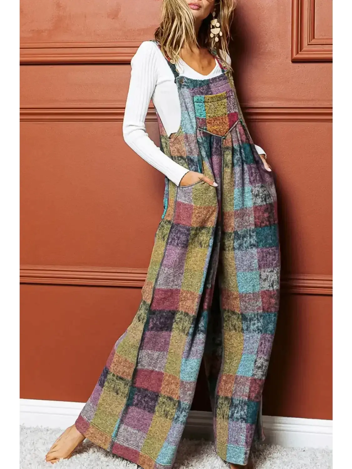 Experience luxurious comfort and style with these elevated Multicolour Brushed Checkered Wide Leg Overalls. Crafted with impeccable attention to detail, these contemporary overalls boast a distinctive checkered pattern, wide leg design, and multicoloured brushed cotton construction, offering a timeless look of sophistication and exclusivity.