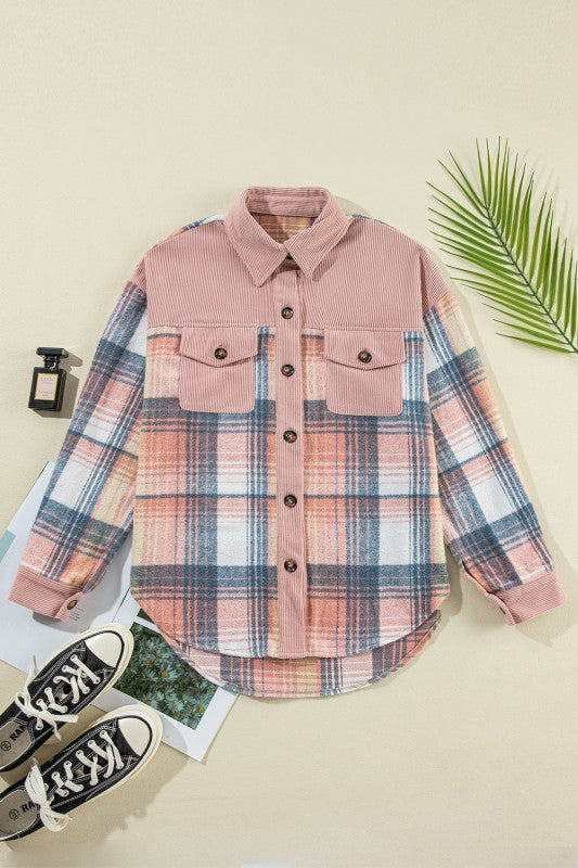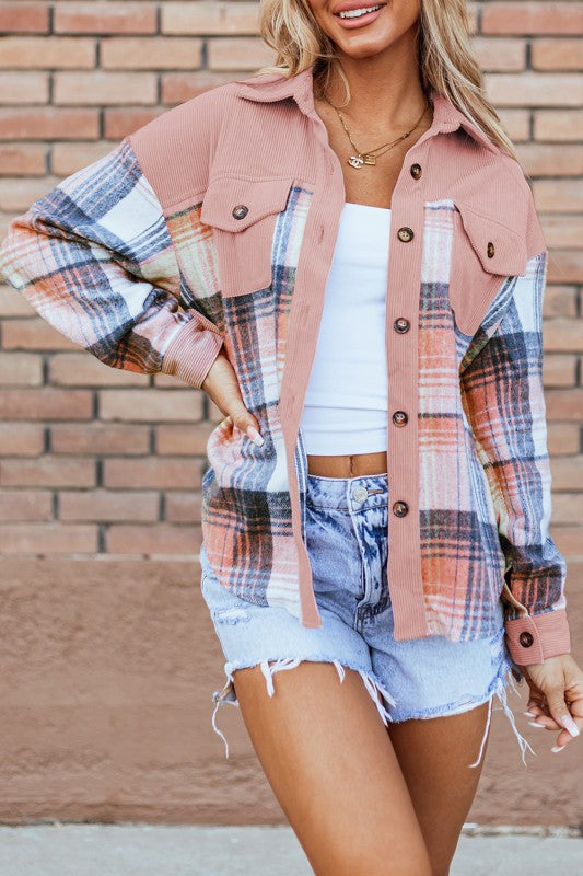 This shacket delivers cozy charm with a trendy twist. Crafted from soft, textured corduroy, it keeps you warm while adding a playful pattern to your outfit. Its classic design pairs perfectly with casual looks, and the chest pockets bring handy storage without sacrificing style. Ideal for layering and making effortless, fun statements wherever you go. 100% Polyester
