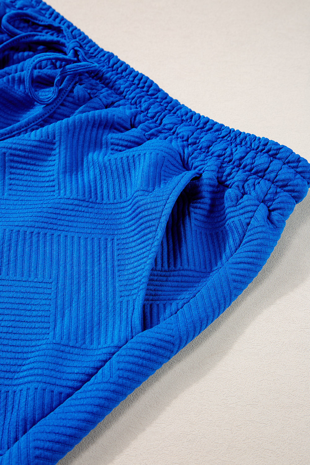 Shorts 2pcs Outfit - Dark Blue Plus Size Fashion Textured