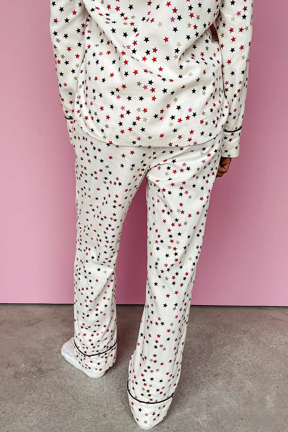 White Contrast Pipping Star Long Sleeve and Pants Pajamas Set