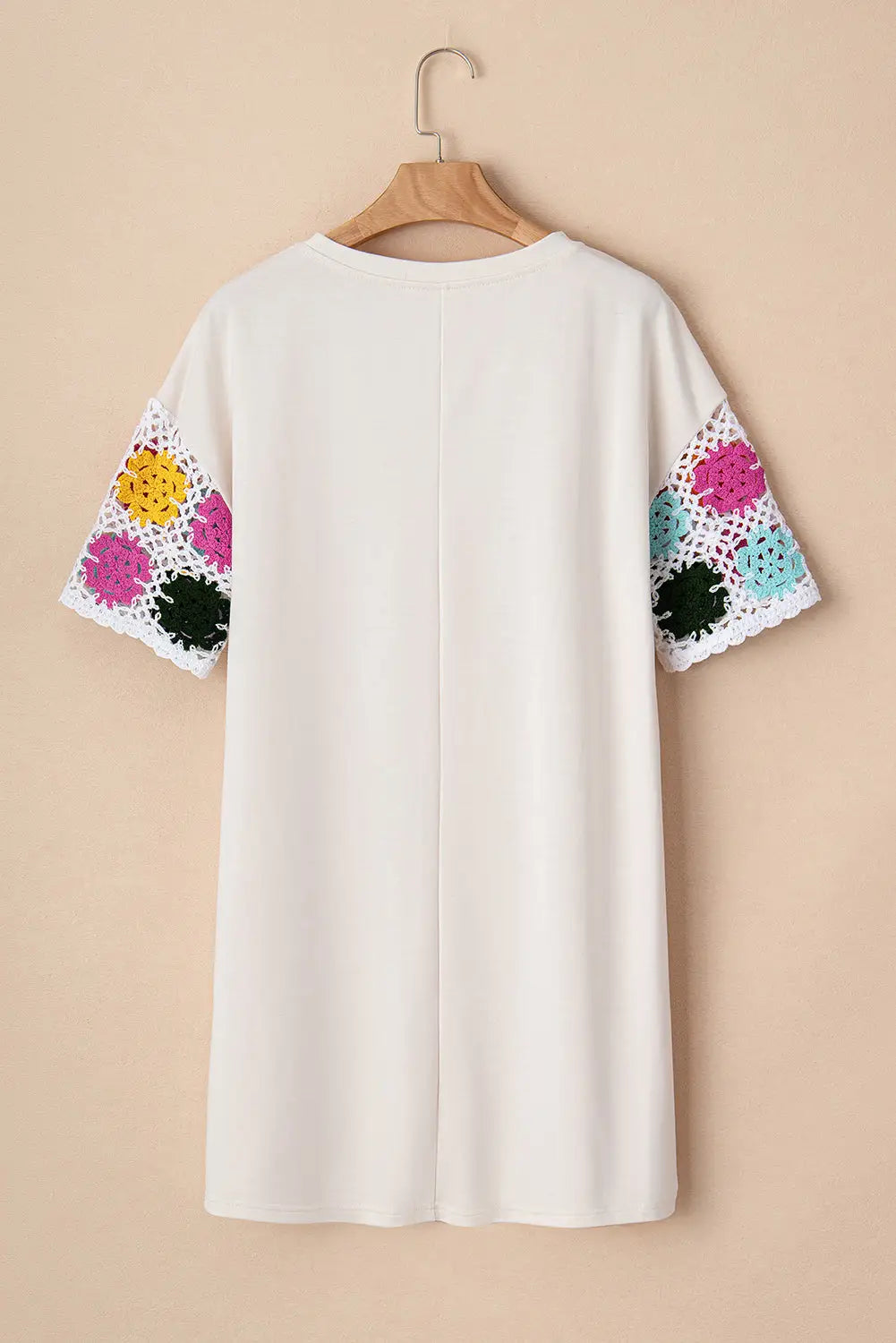White Floral Crochet T-Shirt Dress-1 White Floral Crochet T-Shirt Dress-1