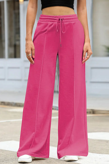 Wide Leg Sweatpants - Rose Red Terry Knit Drawstring Smocked Waist
