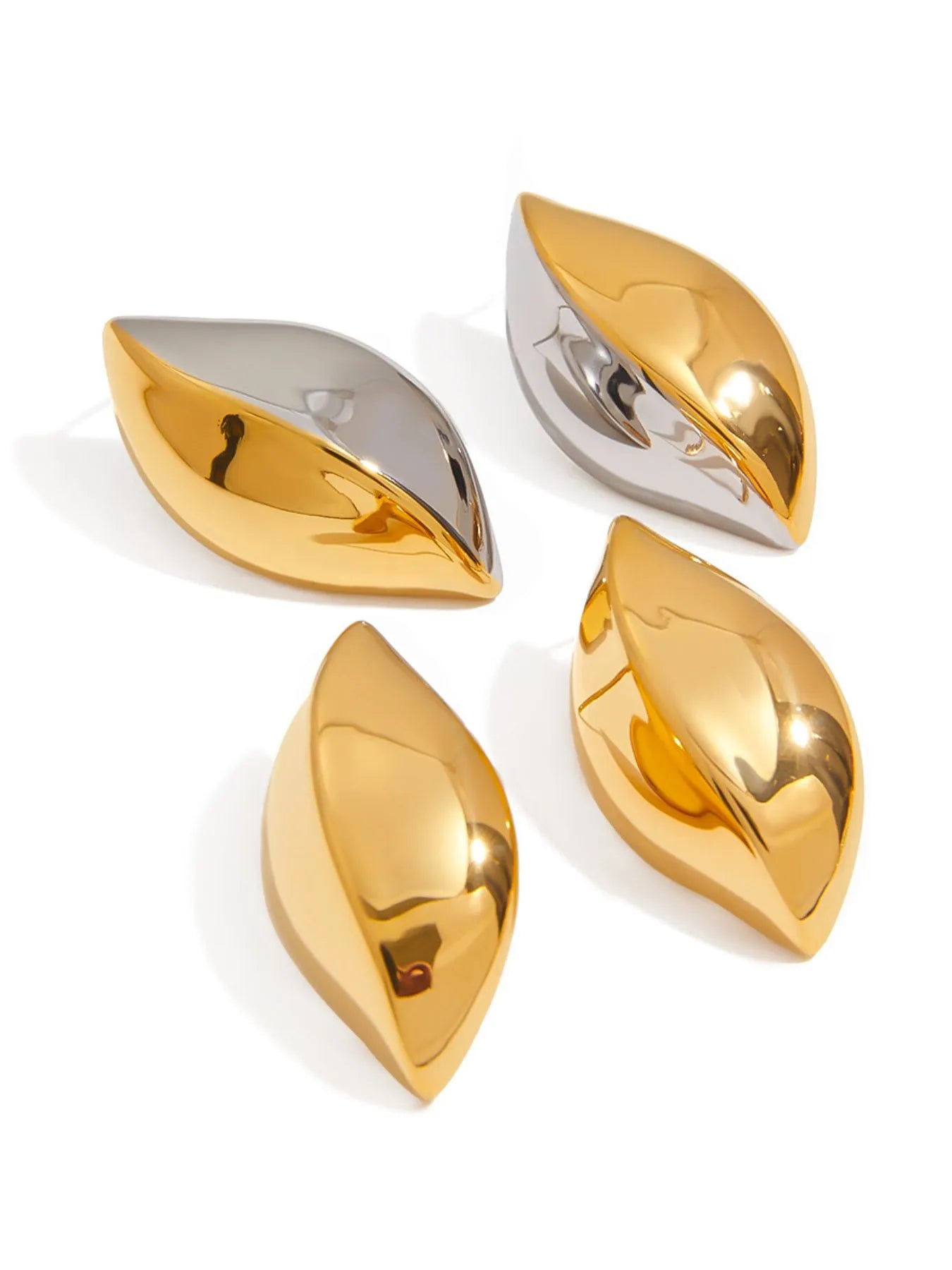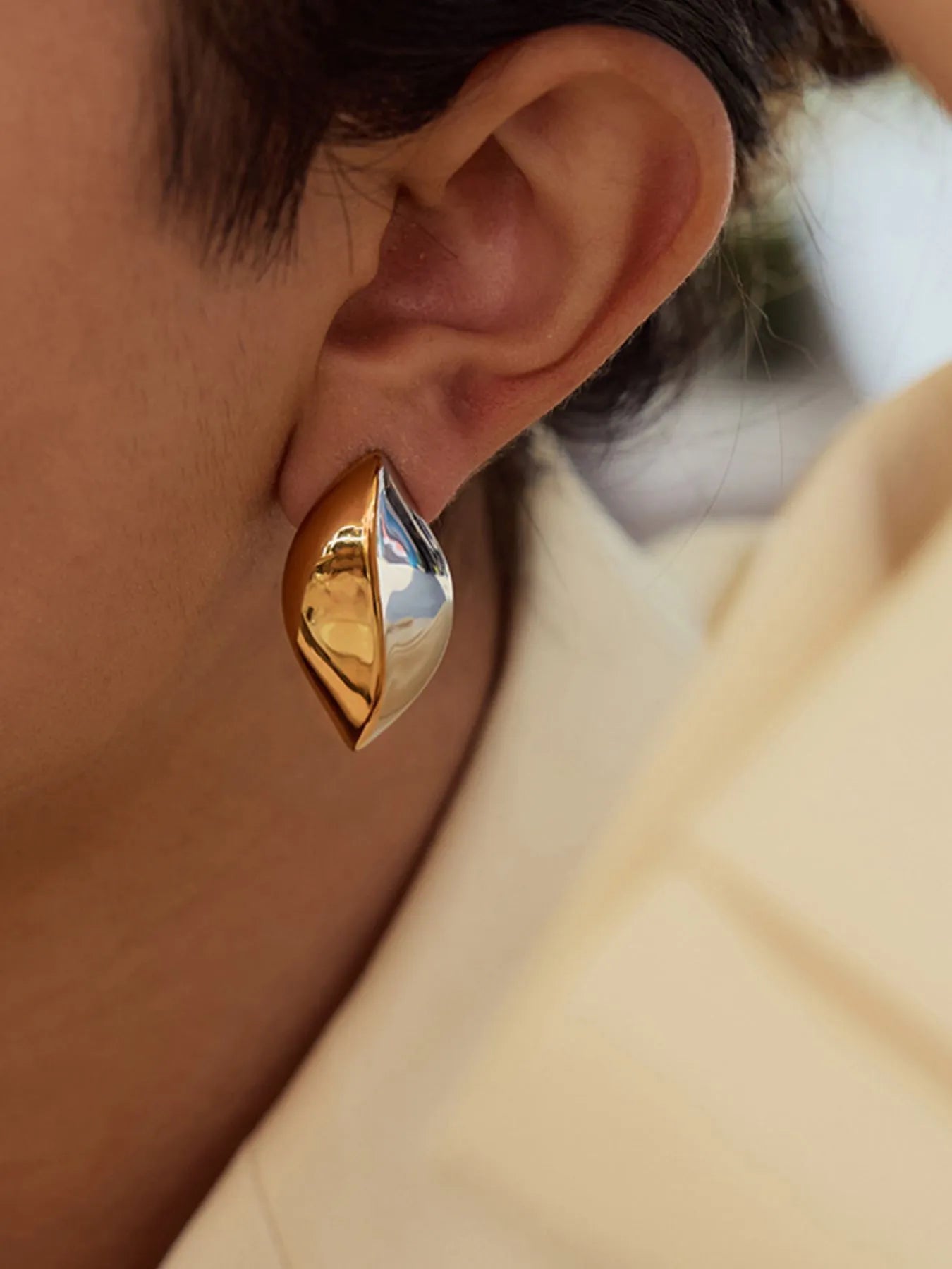 2-Pair Stainless Steel Two-Tone Teardrop Earrings