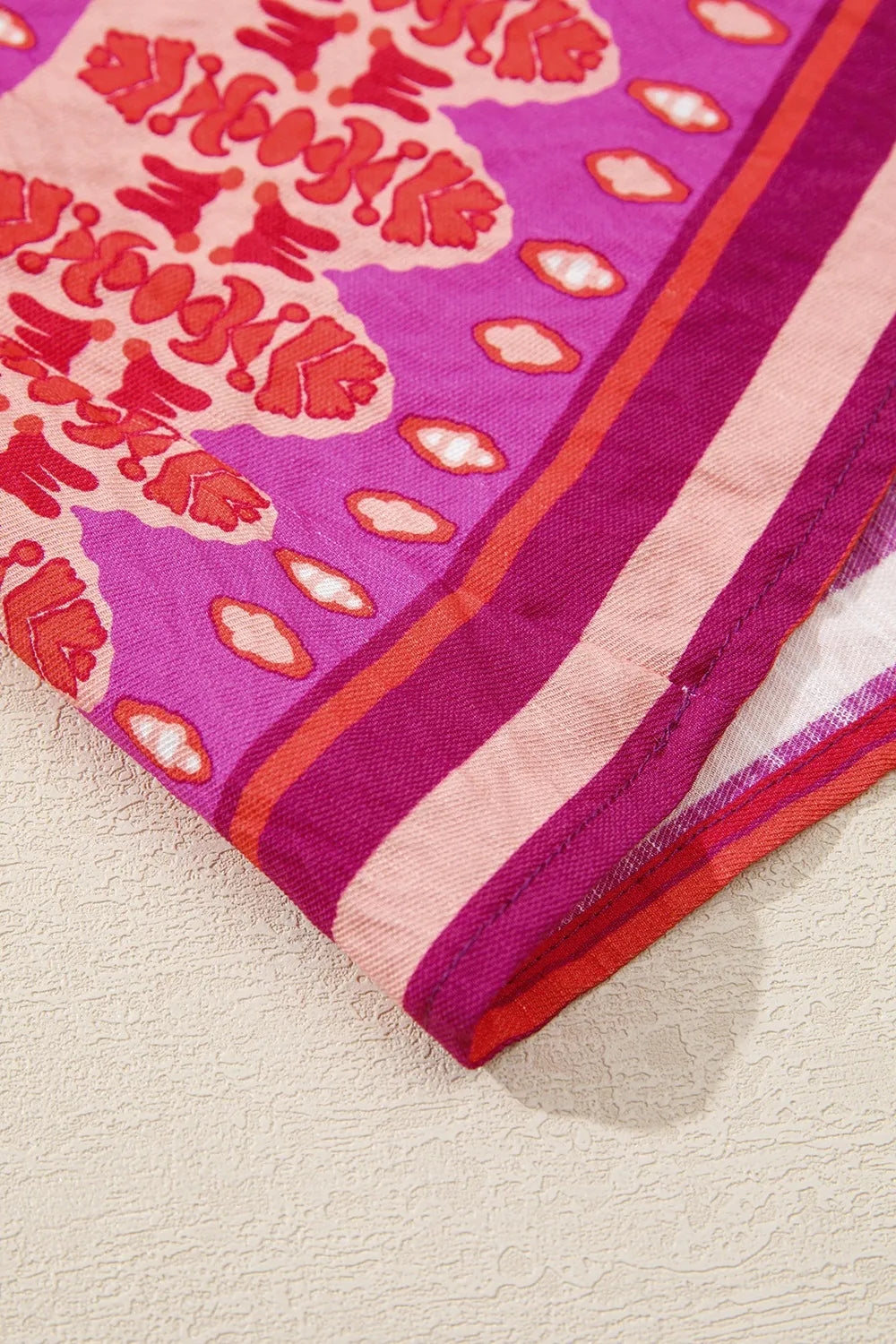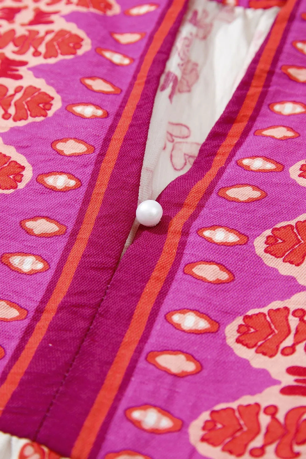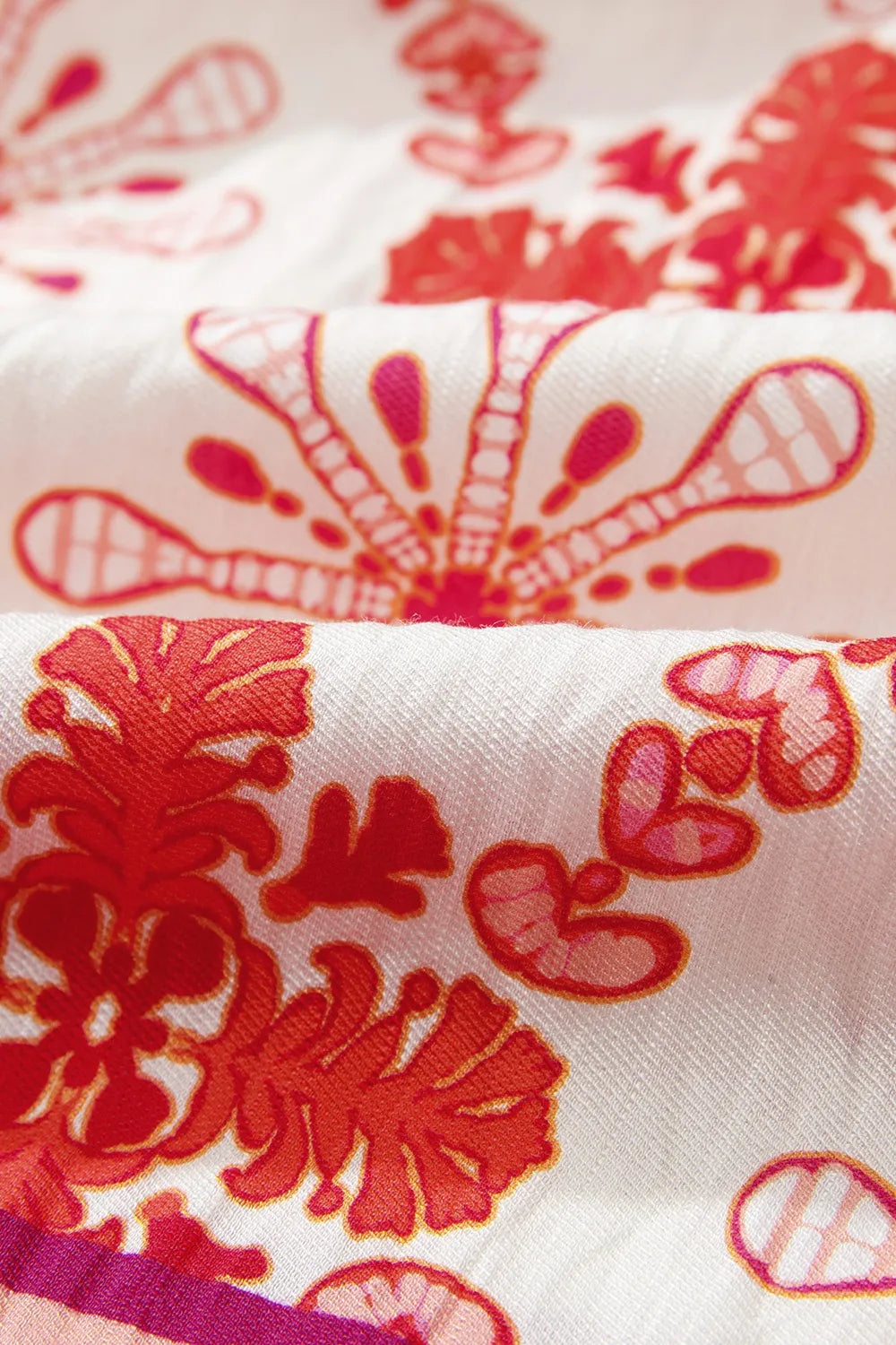 Boho Floral Short Sleeve Tie Neck Mini Dress