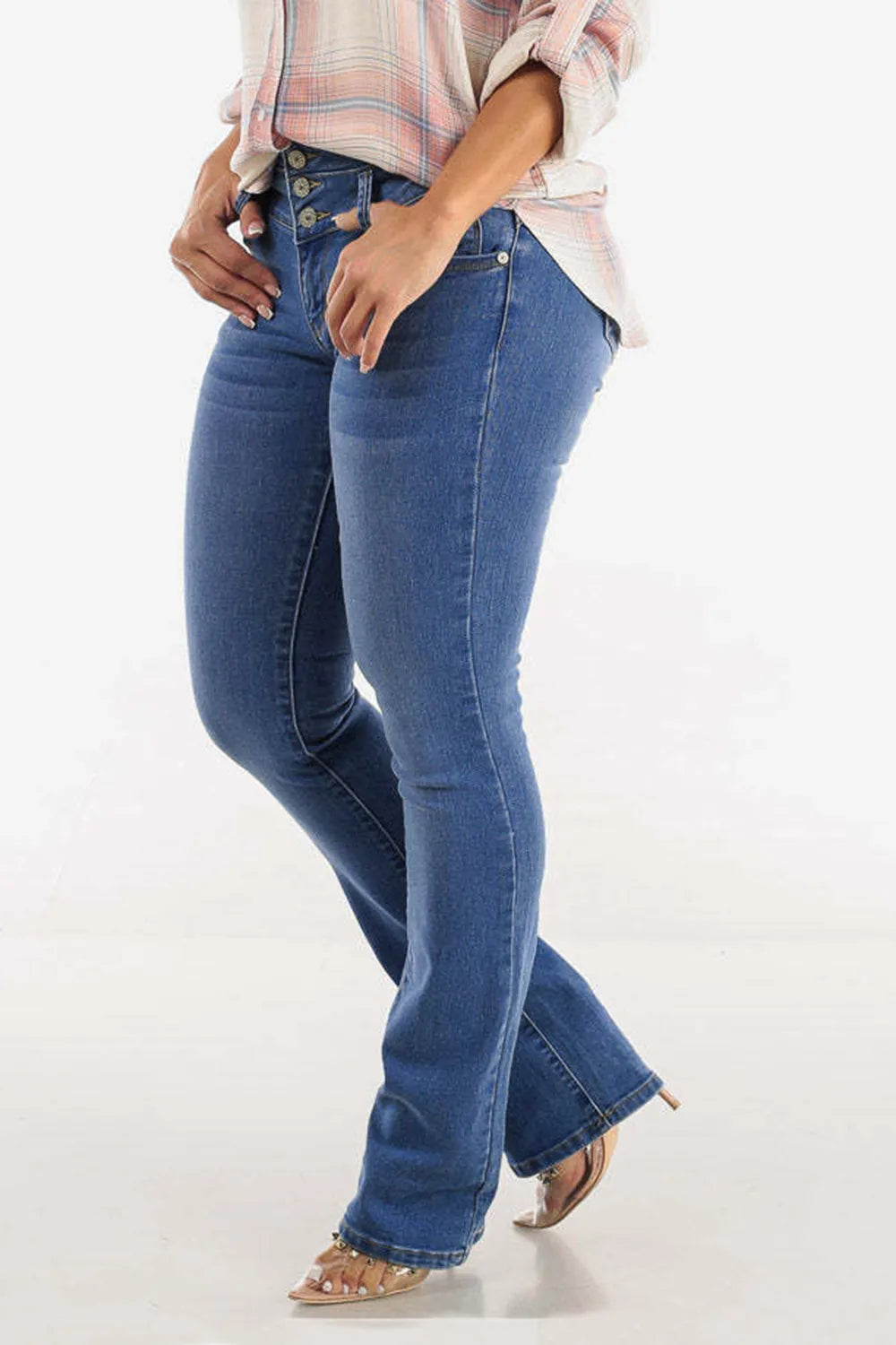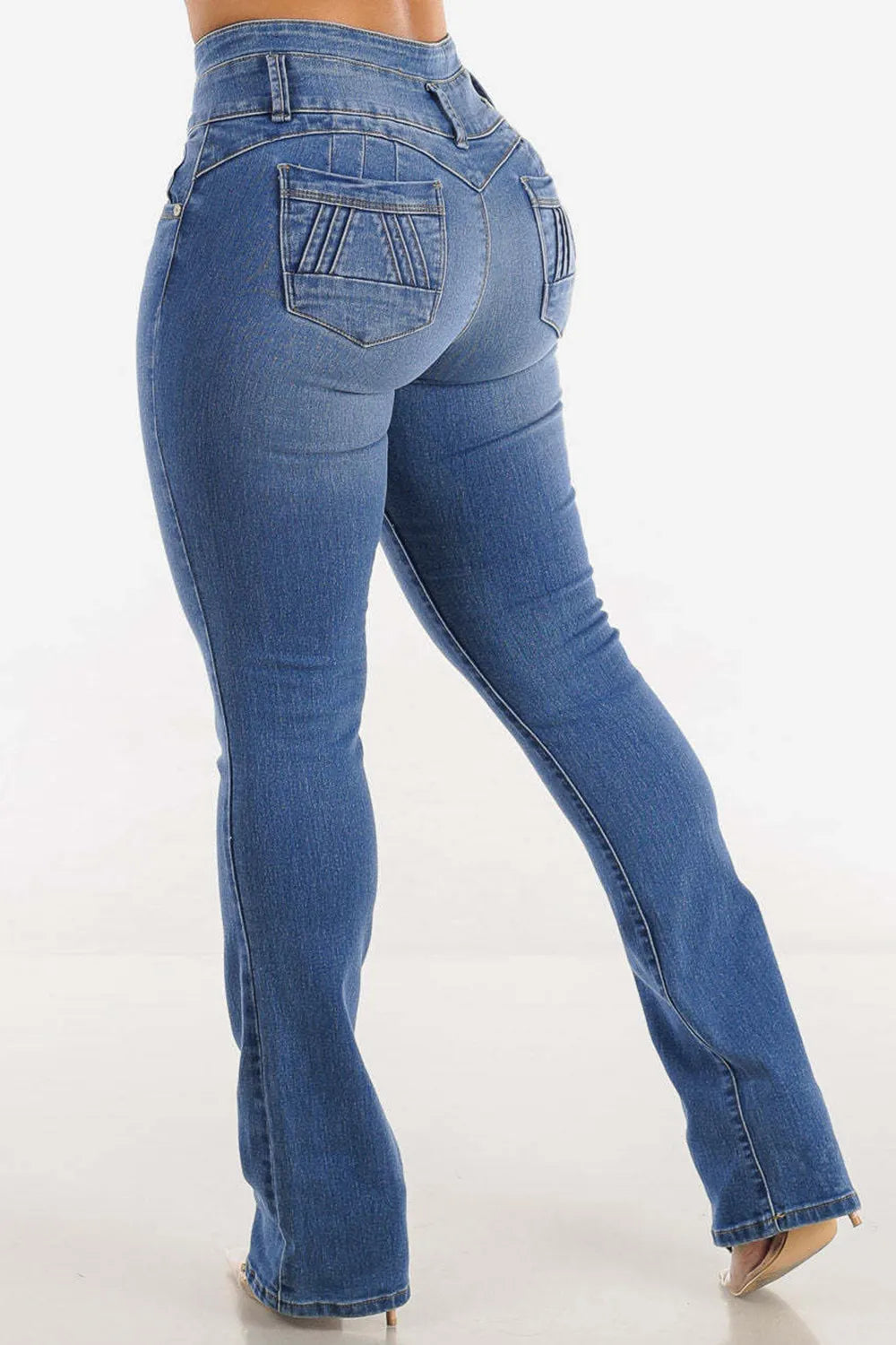 Bootcut High-Rise Buttoned Hip-Lift Jeans