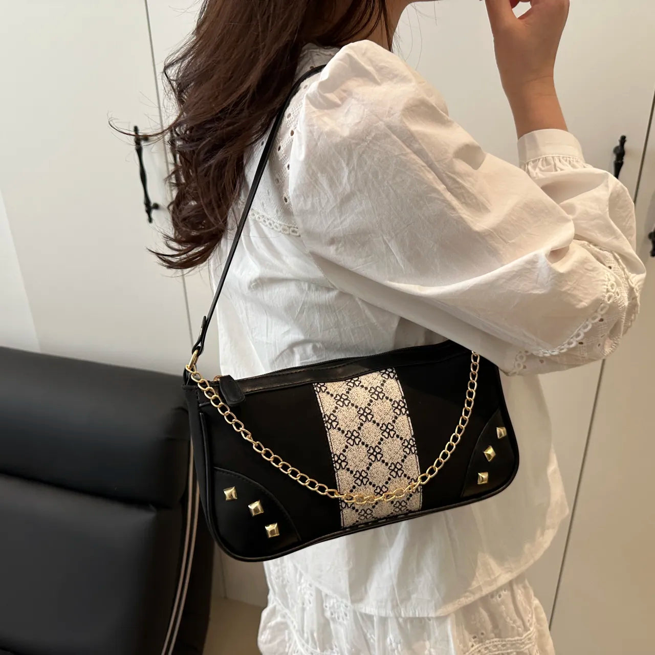 Chain Shoulder Bag with Studded Details