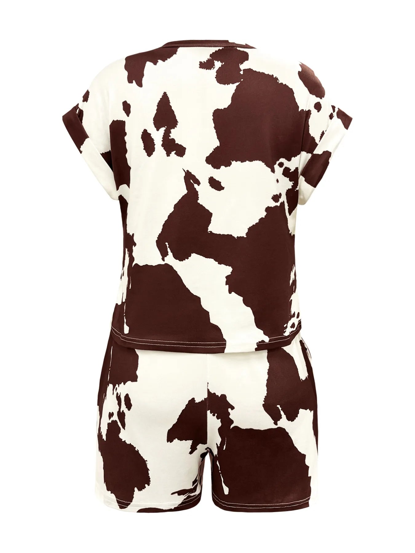 Cow Print T-Shirt and Drawstring Shorts Set