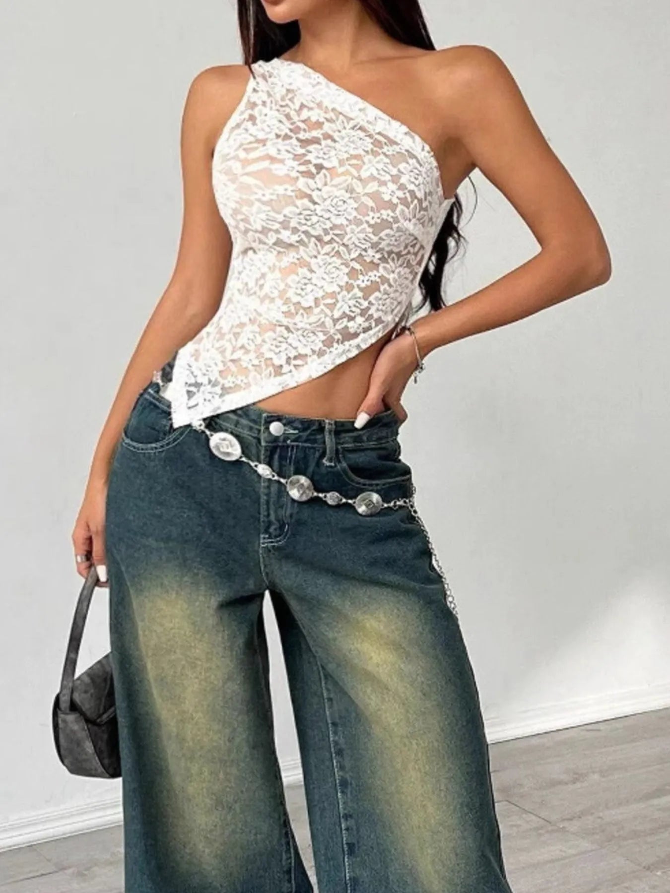 Lace One-Shoulder Asymmetric Top
