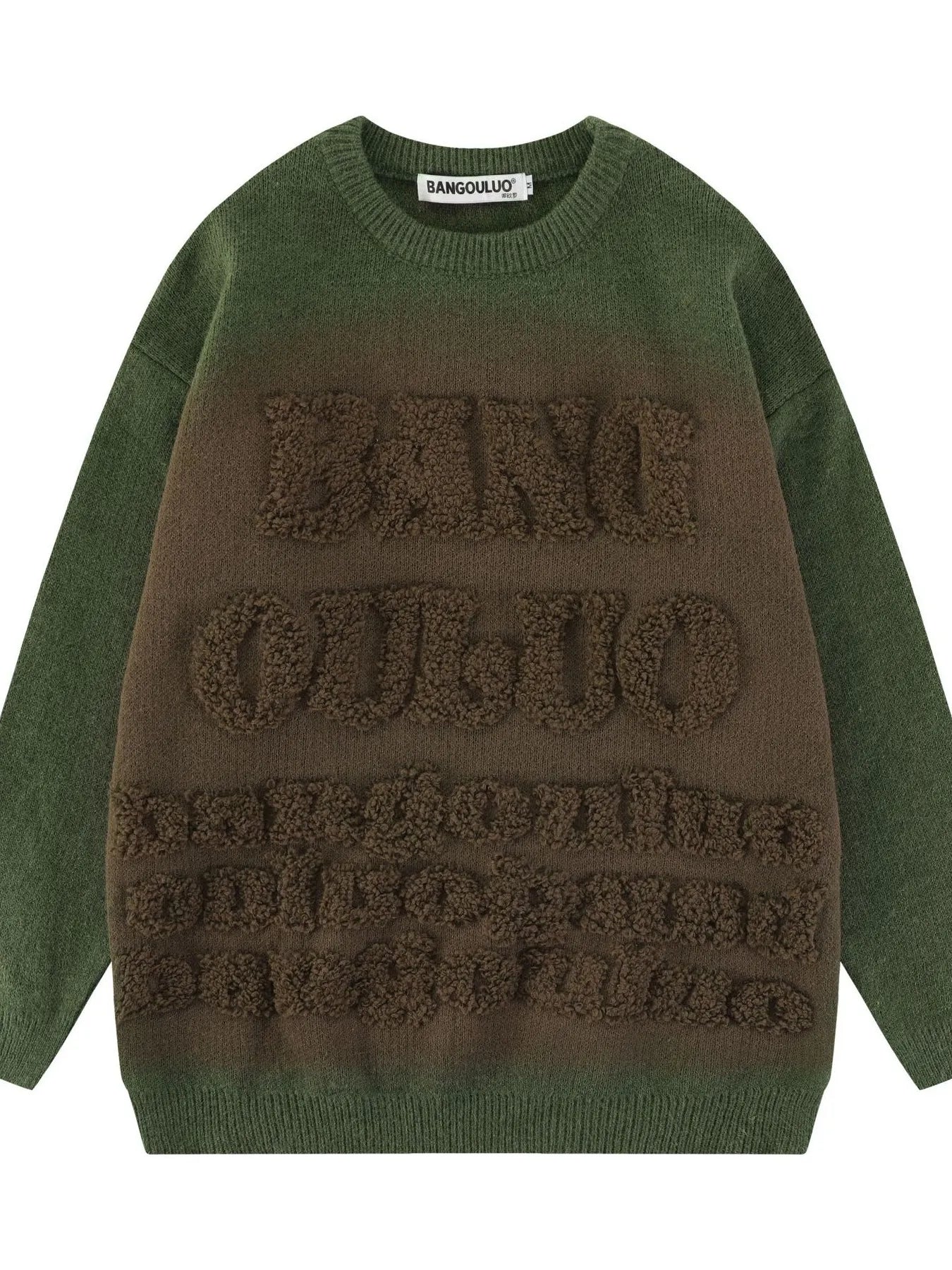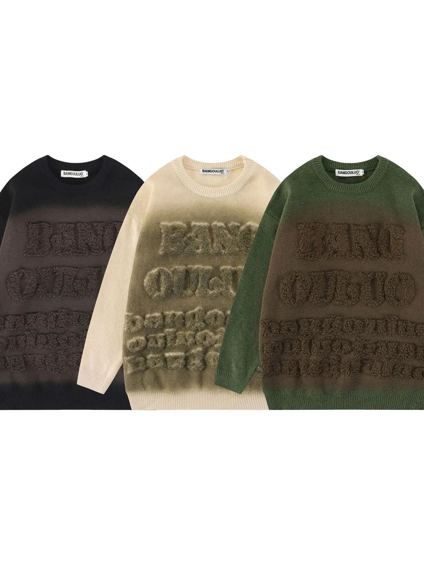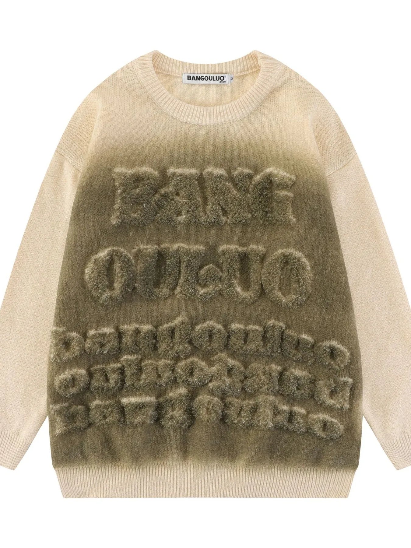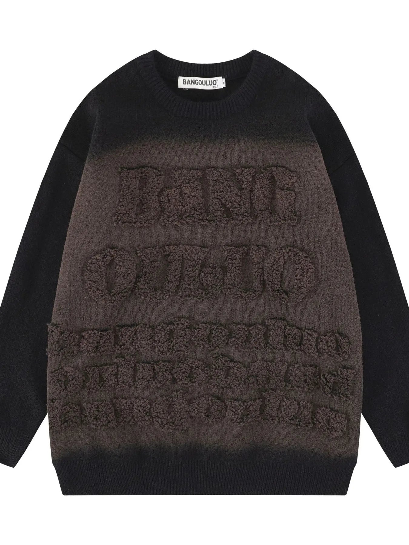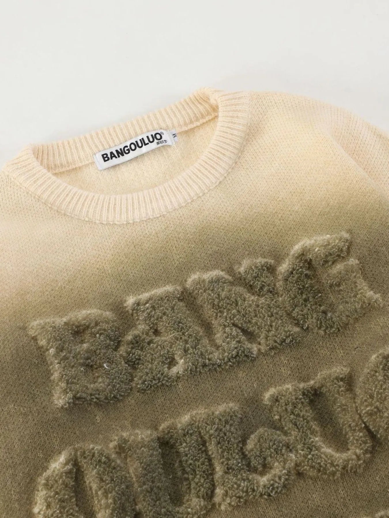 Men's Gradient Letter Pattern Long Sleeve Sweater