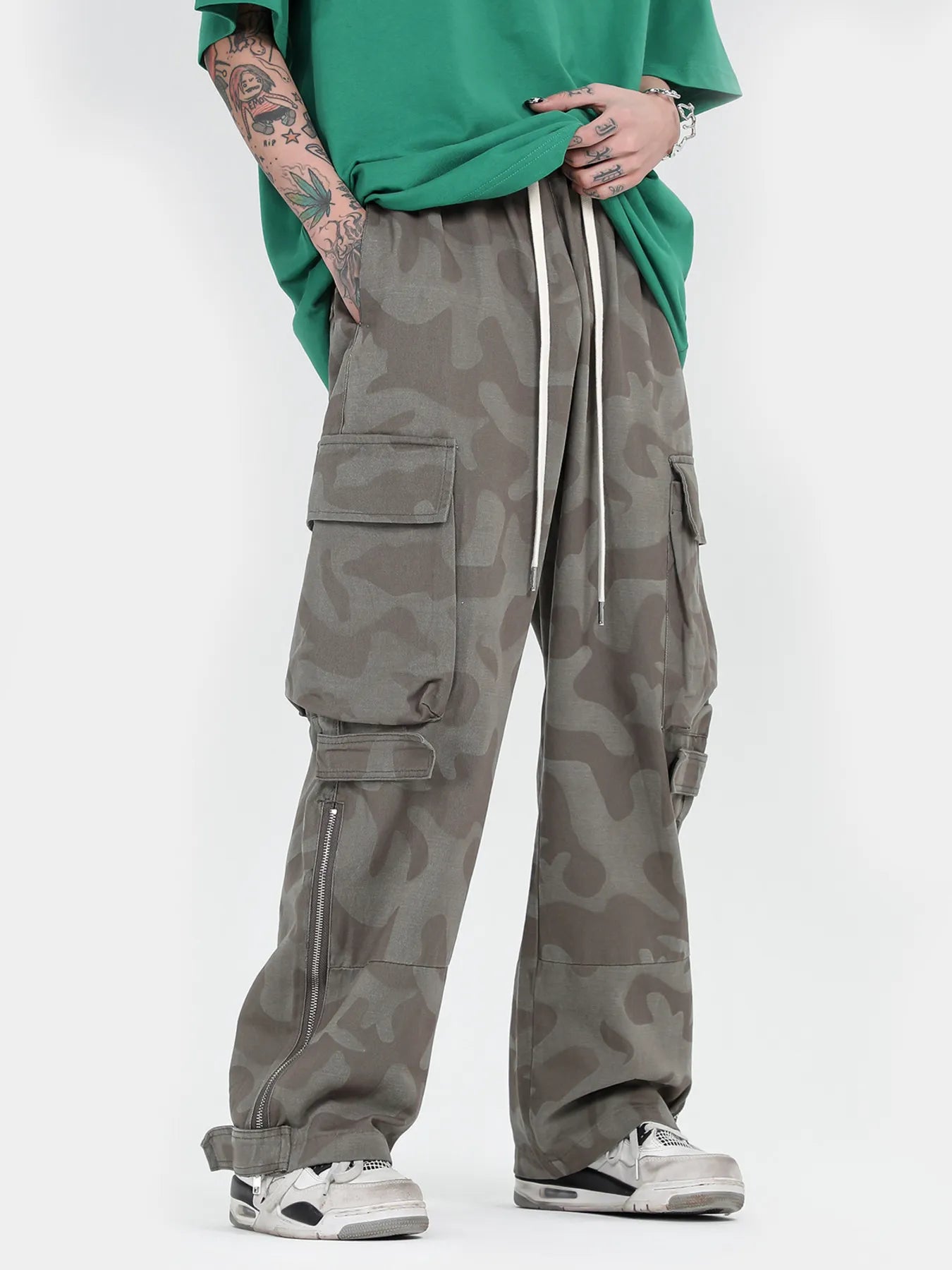 Men's Loose Fit Camo Cargo Pants with Drawstring