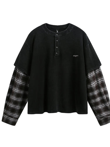 Men's Plaid Long Sleeve Henley Sweatshirt