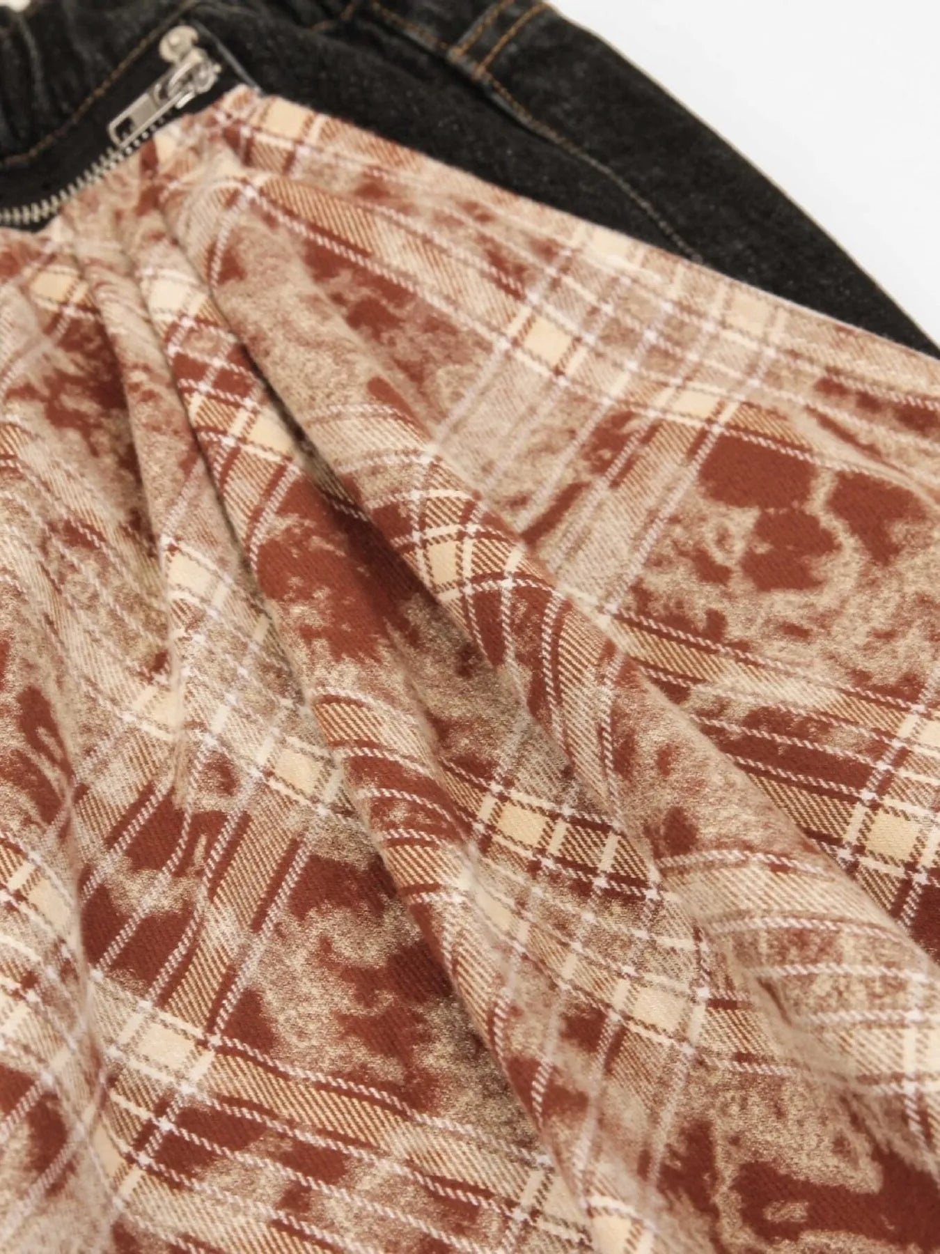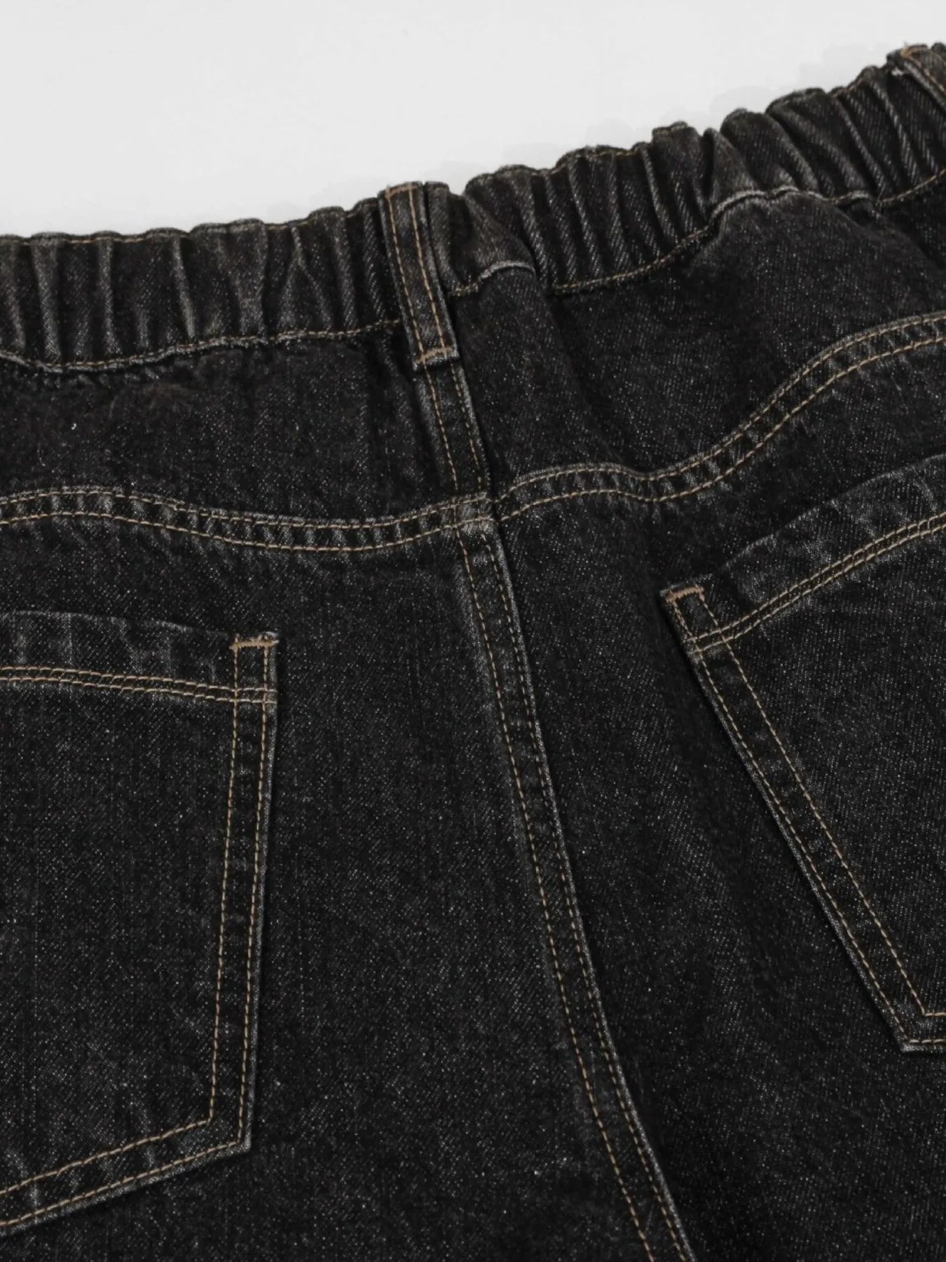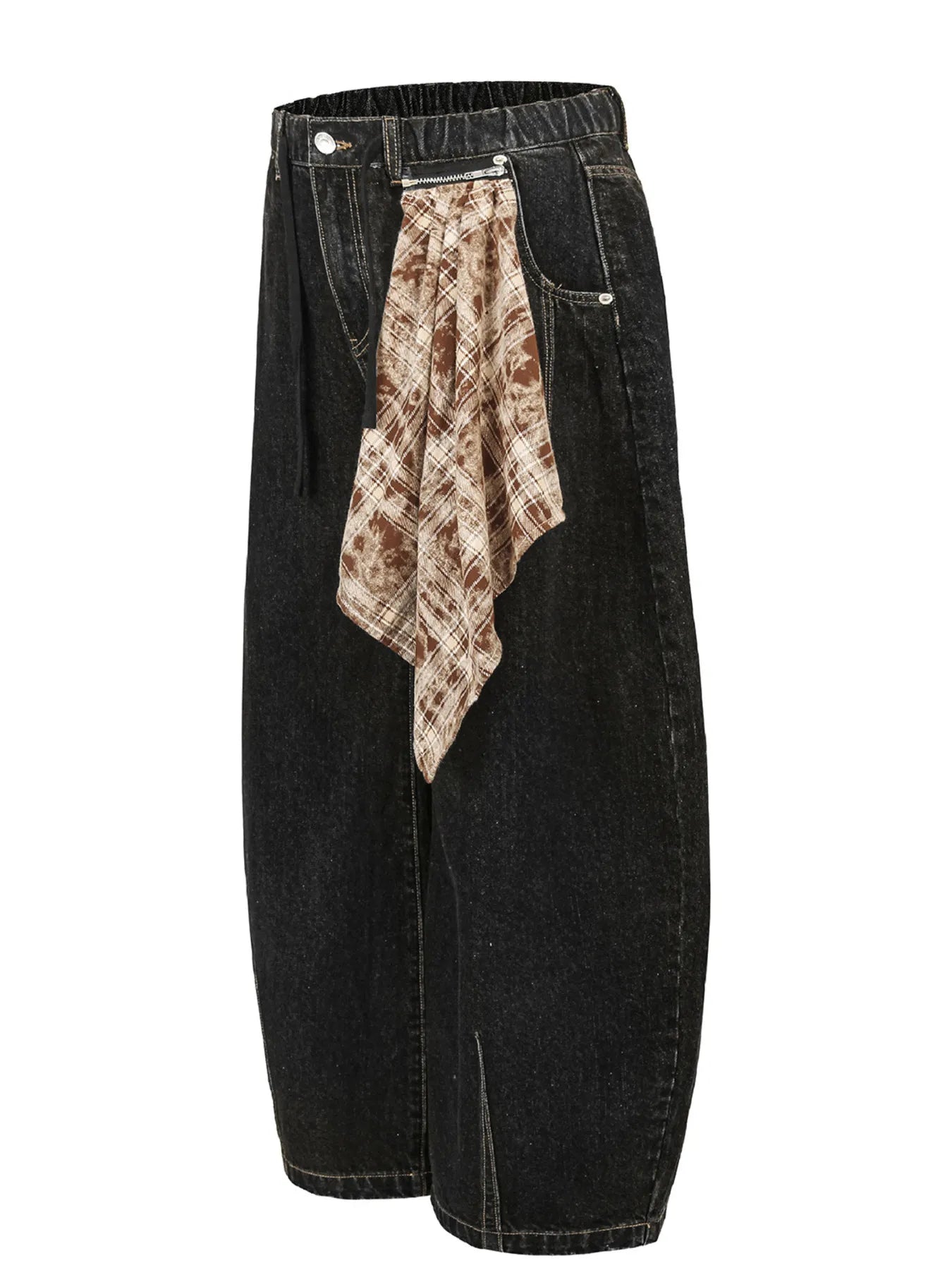 Men's Washed Curved Denim Shorts with Decorative Scarf