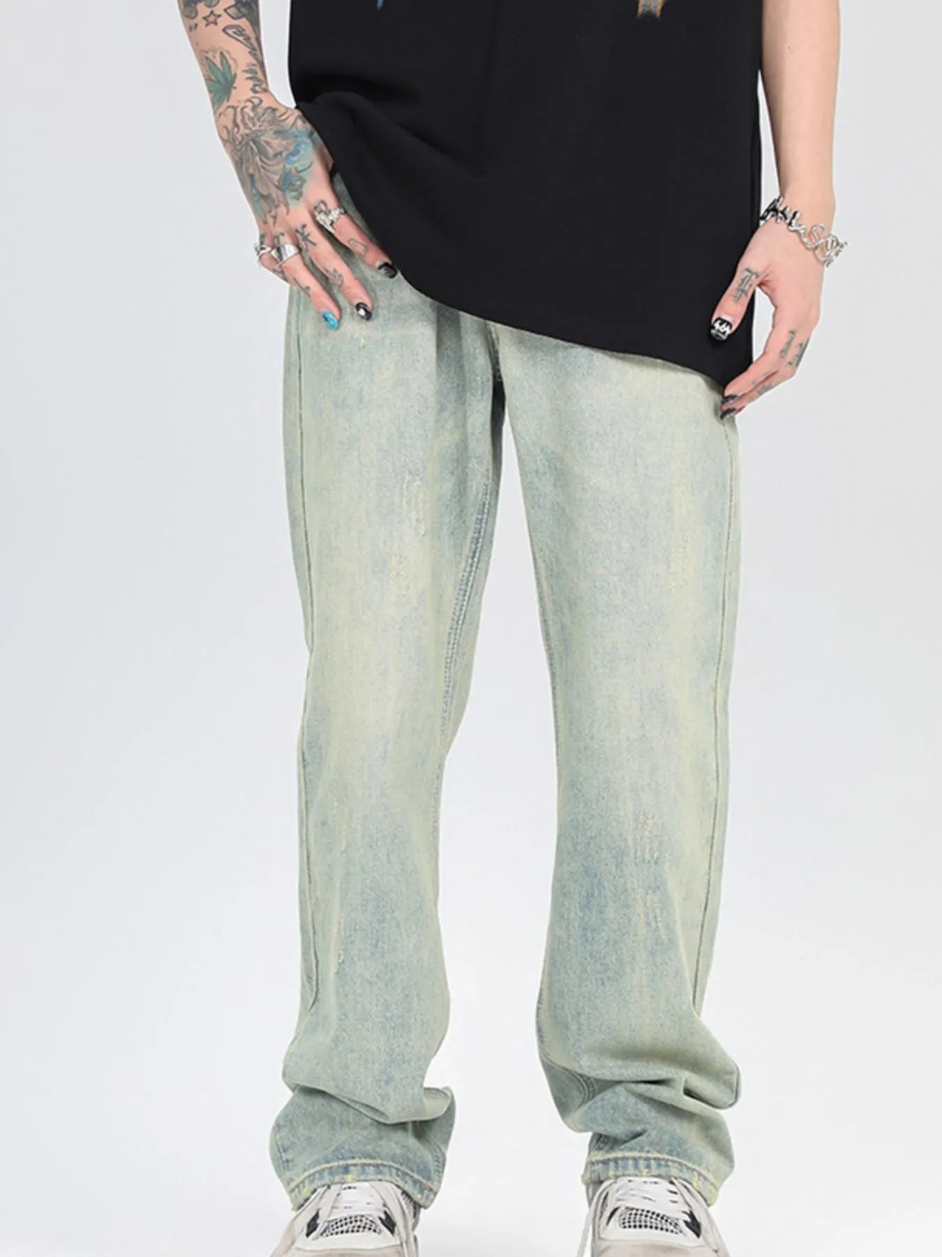 Men's Washed Straight Leg Jeans