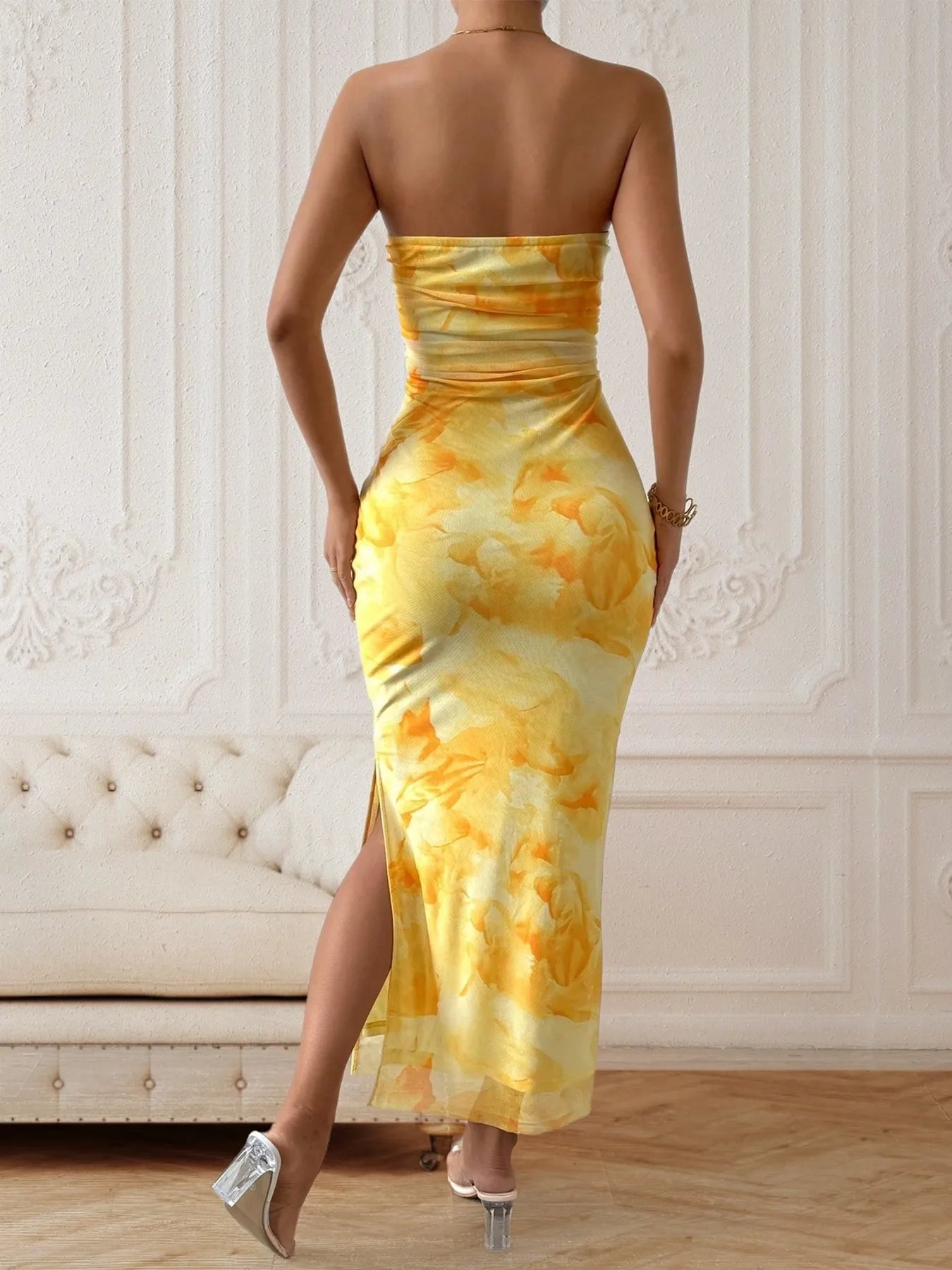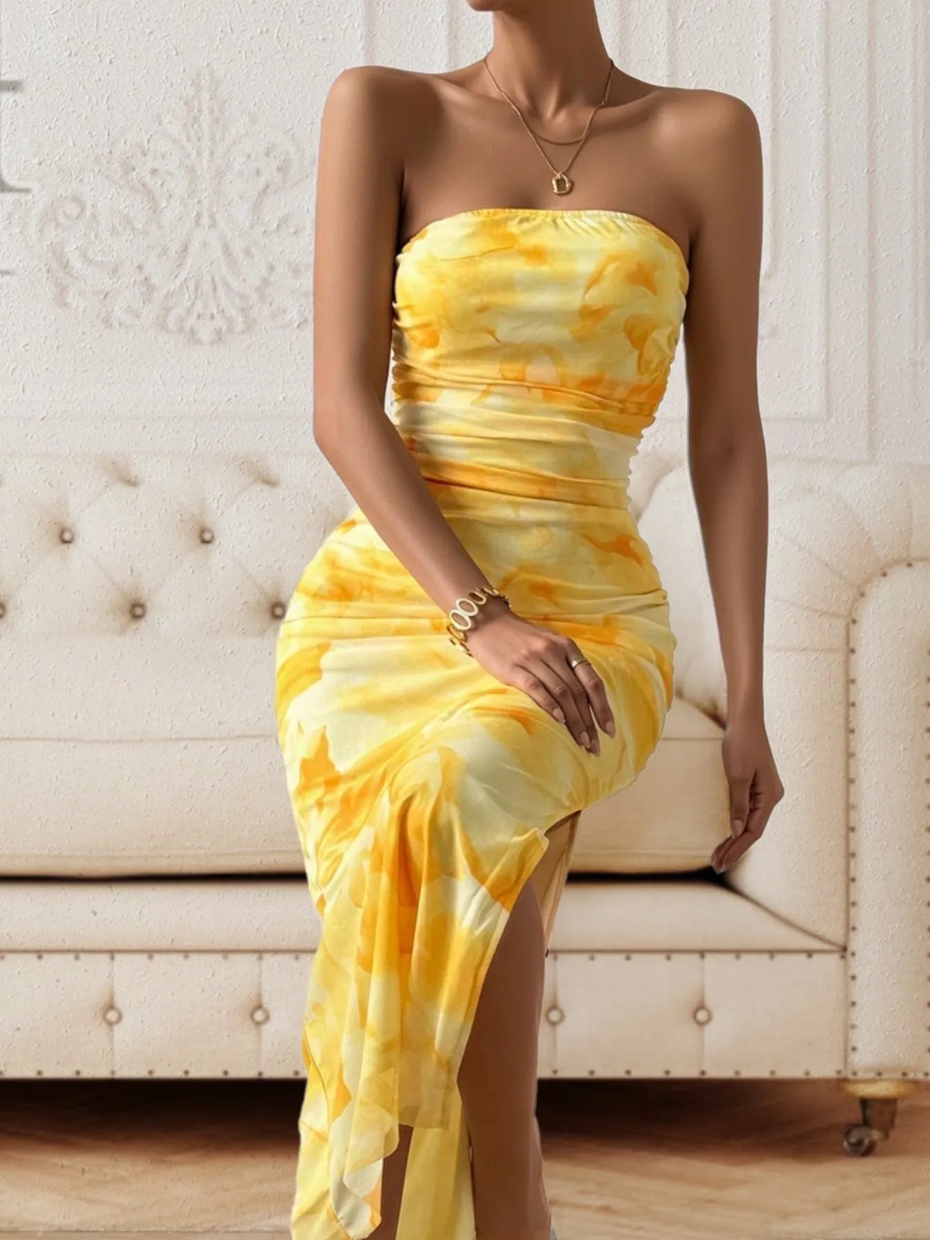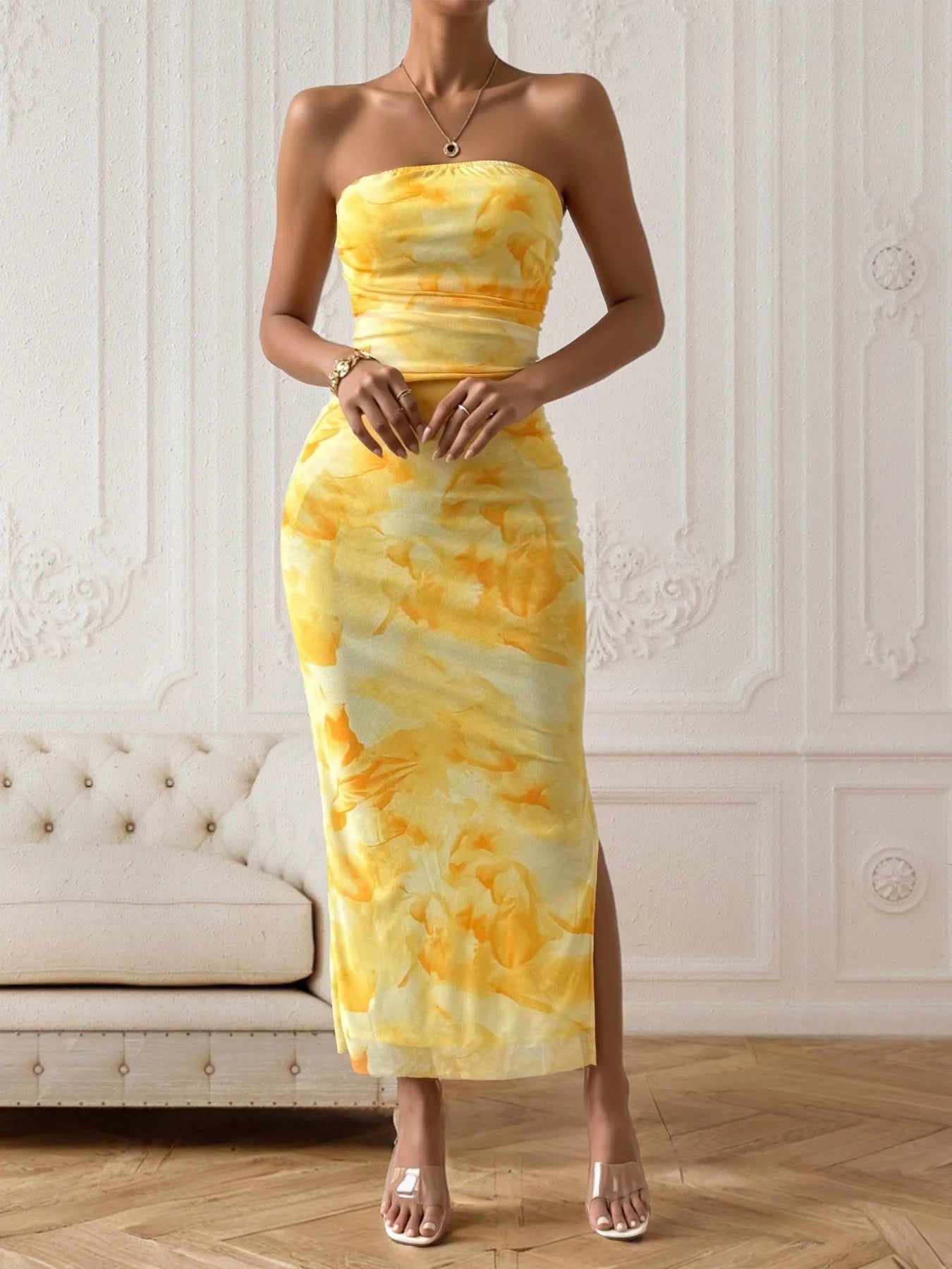 Slit Strapless Bodycon Dress