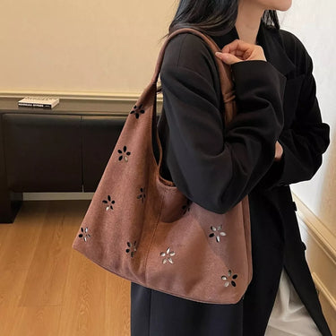 Floral Cutout Corduroy Shoulder Bag