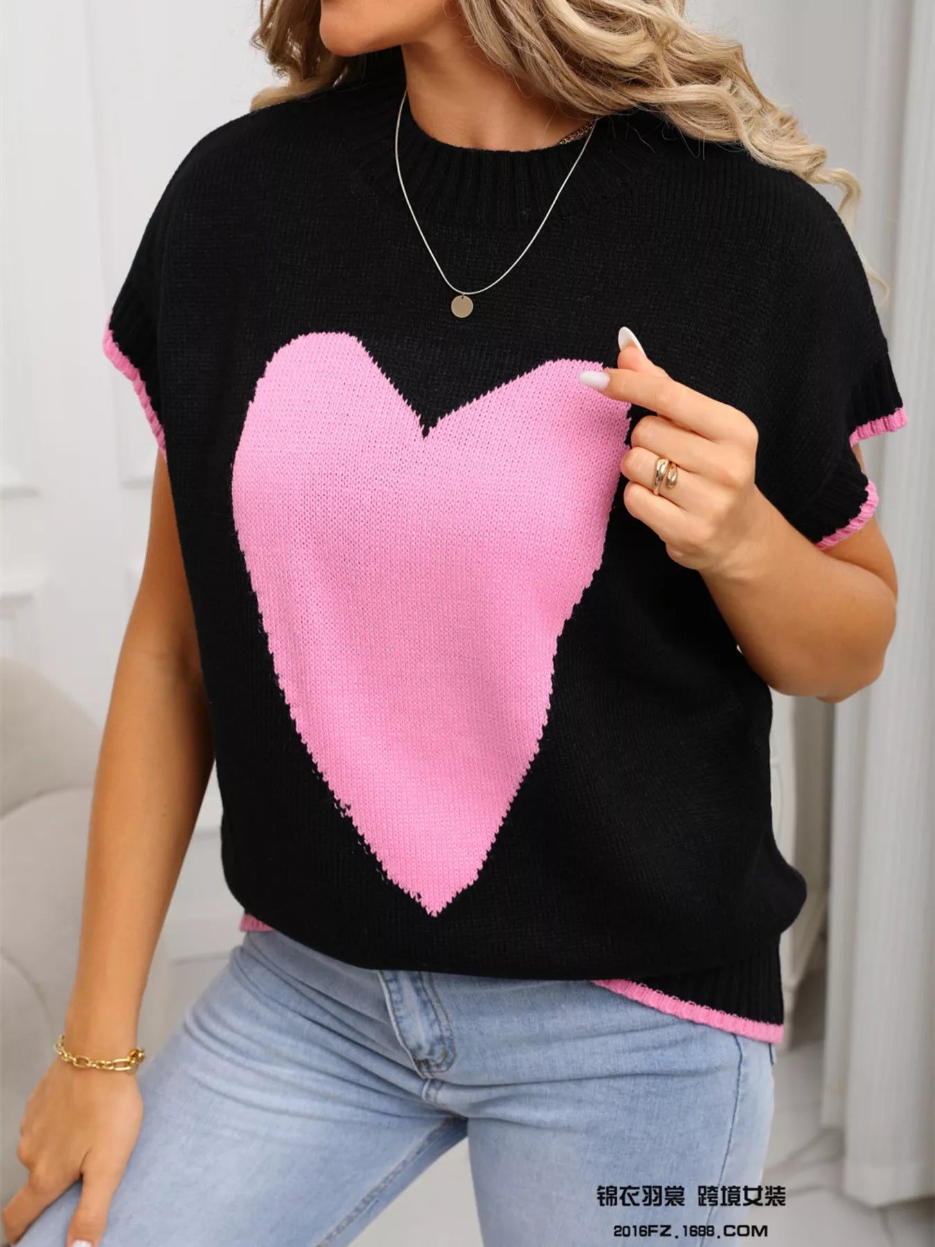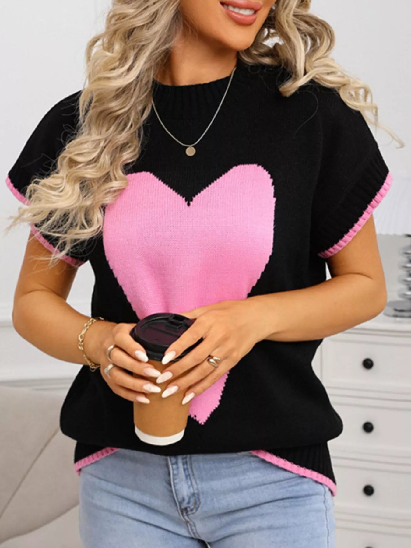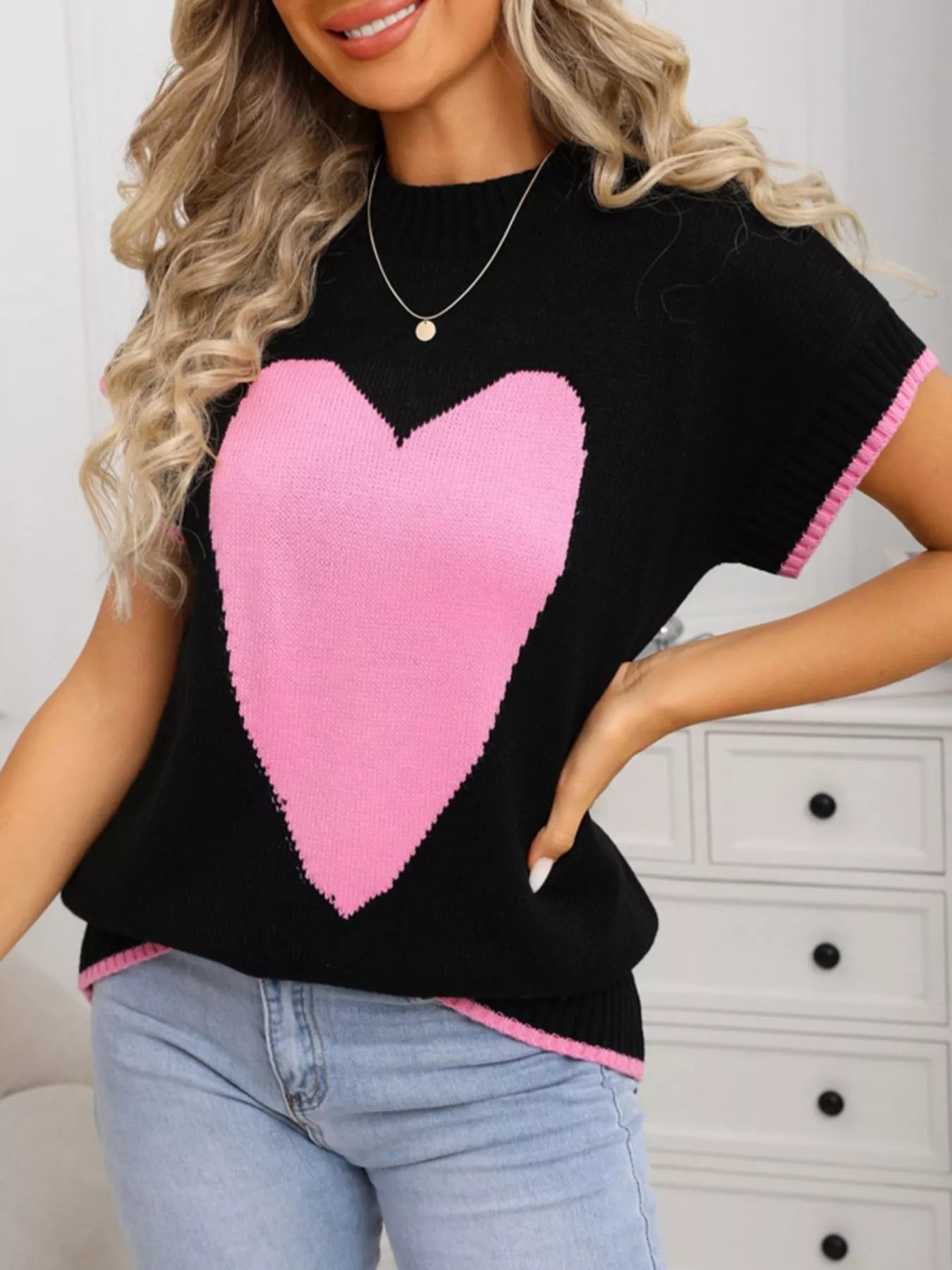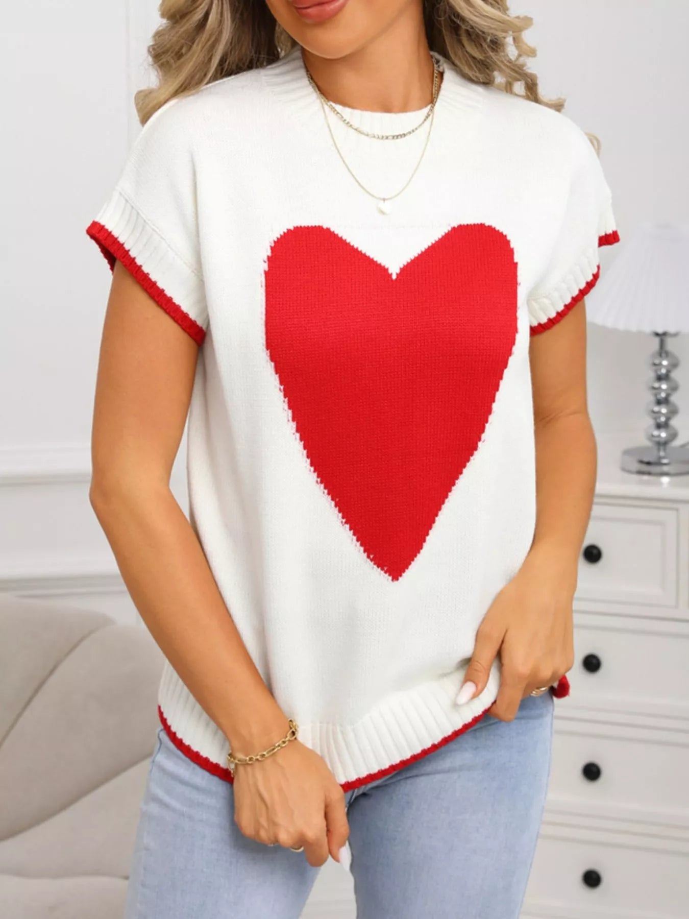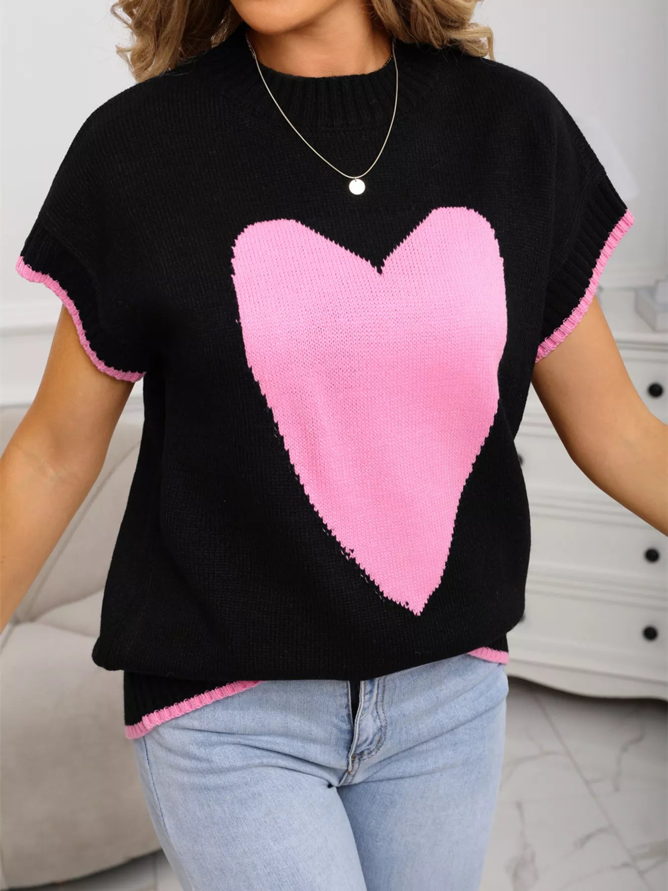 Valentine's Day Heart Graphic Short Sleeve Sweater