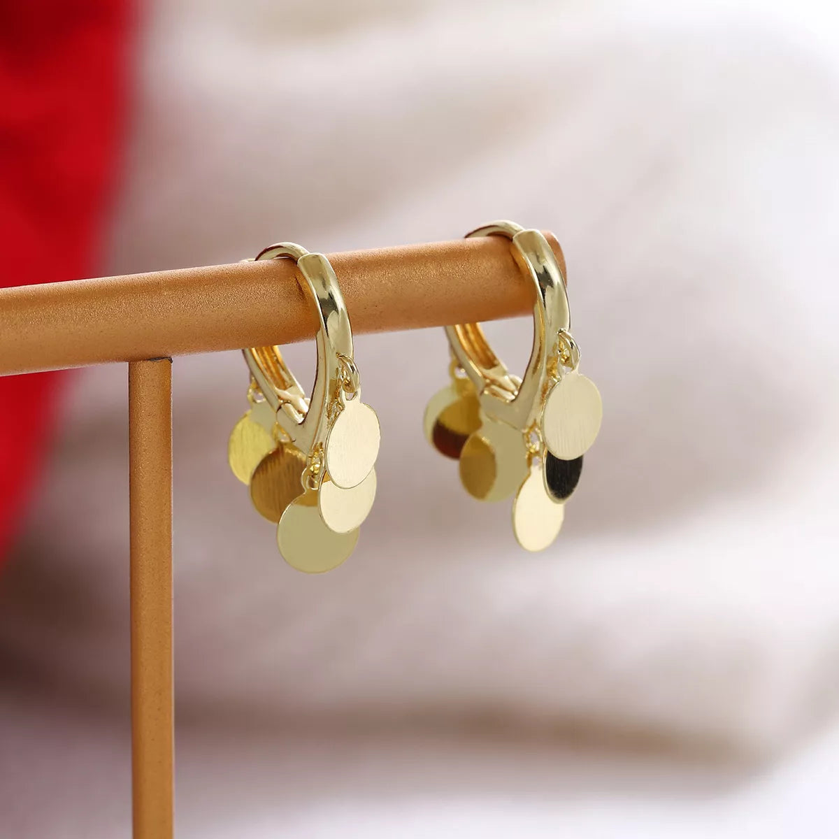 18K Gold-Plated Drop Hoop Earrings with Dangling Disc Charms