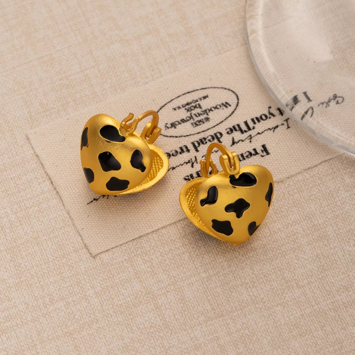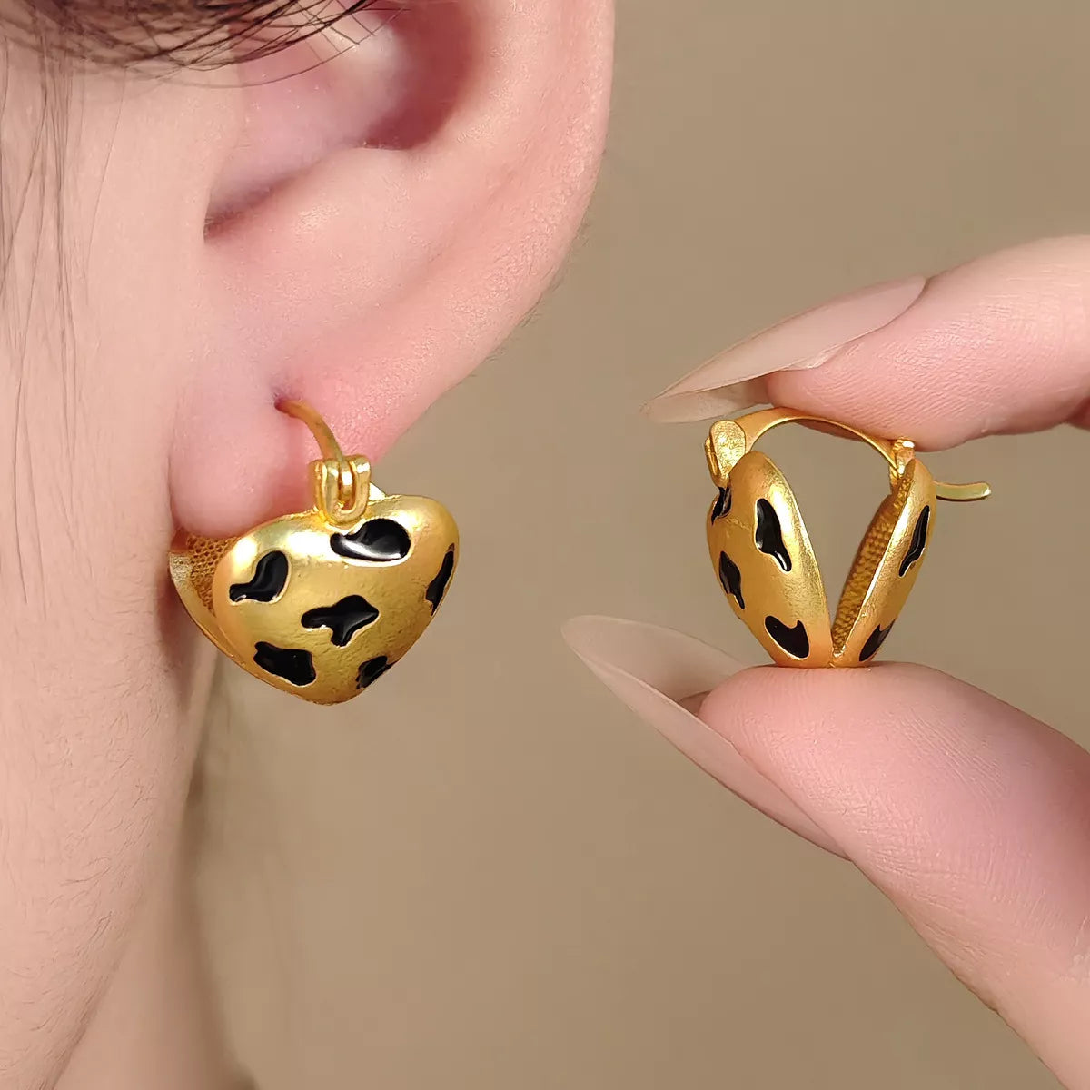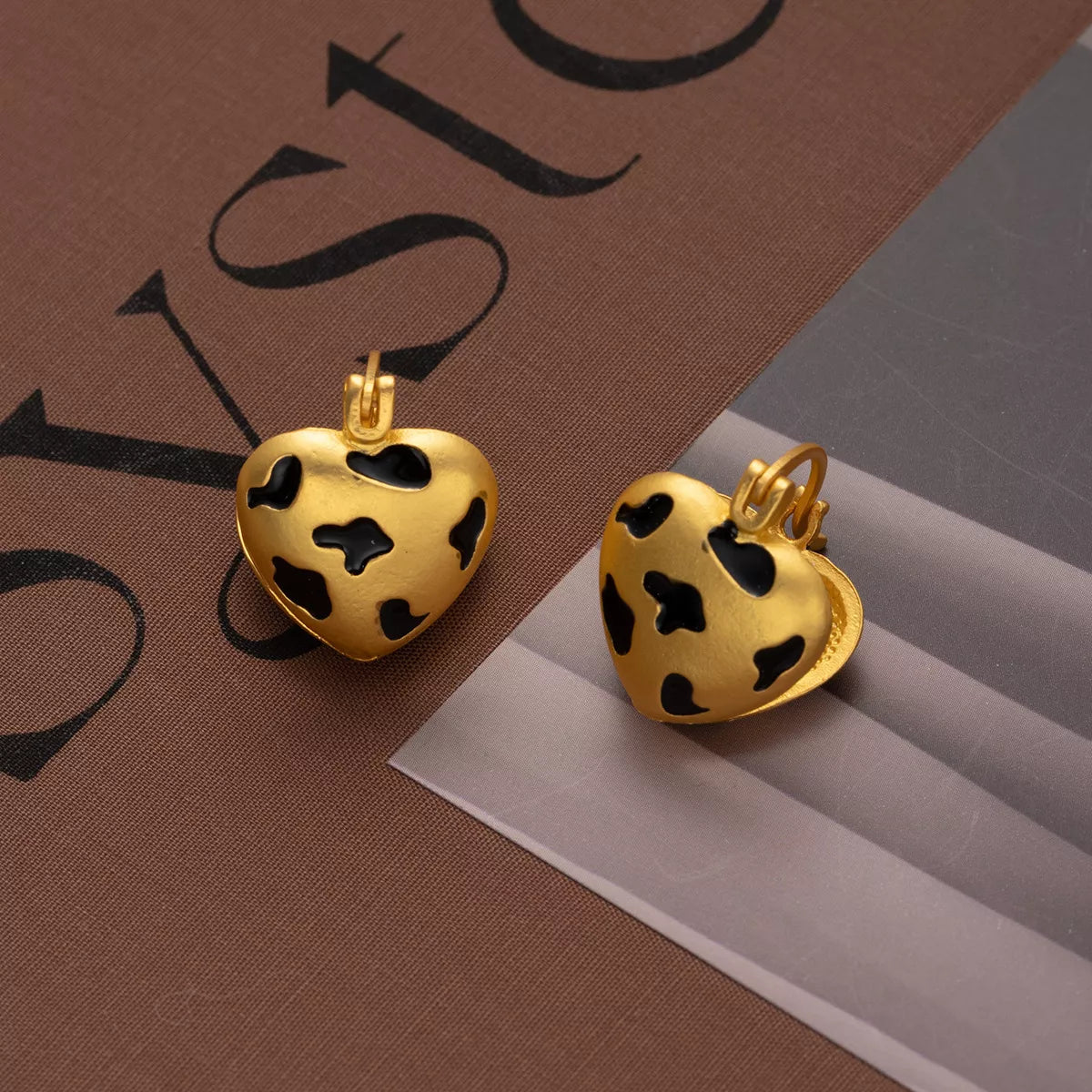 18K Gold-Plated Heart Leopard Print Statement Earrings