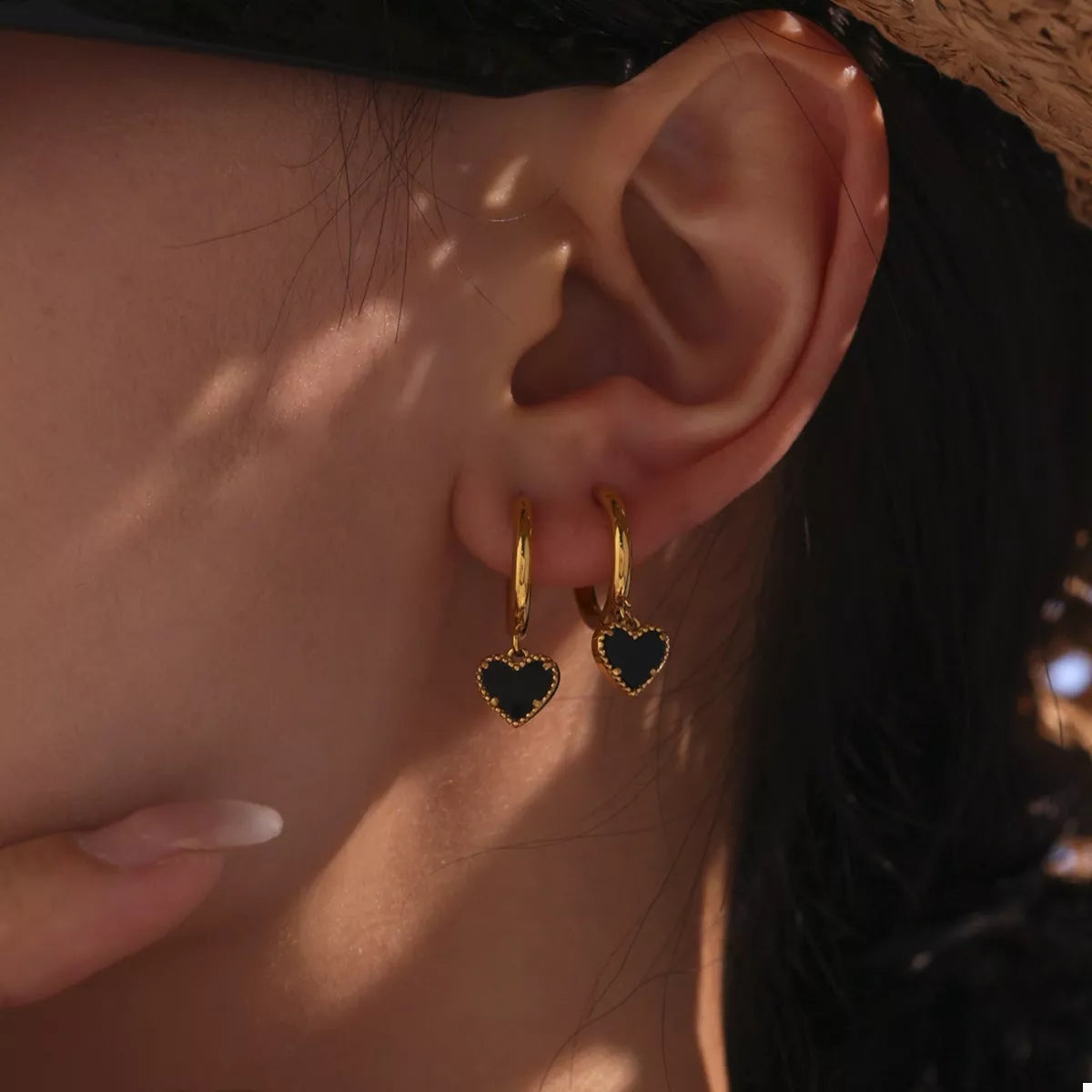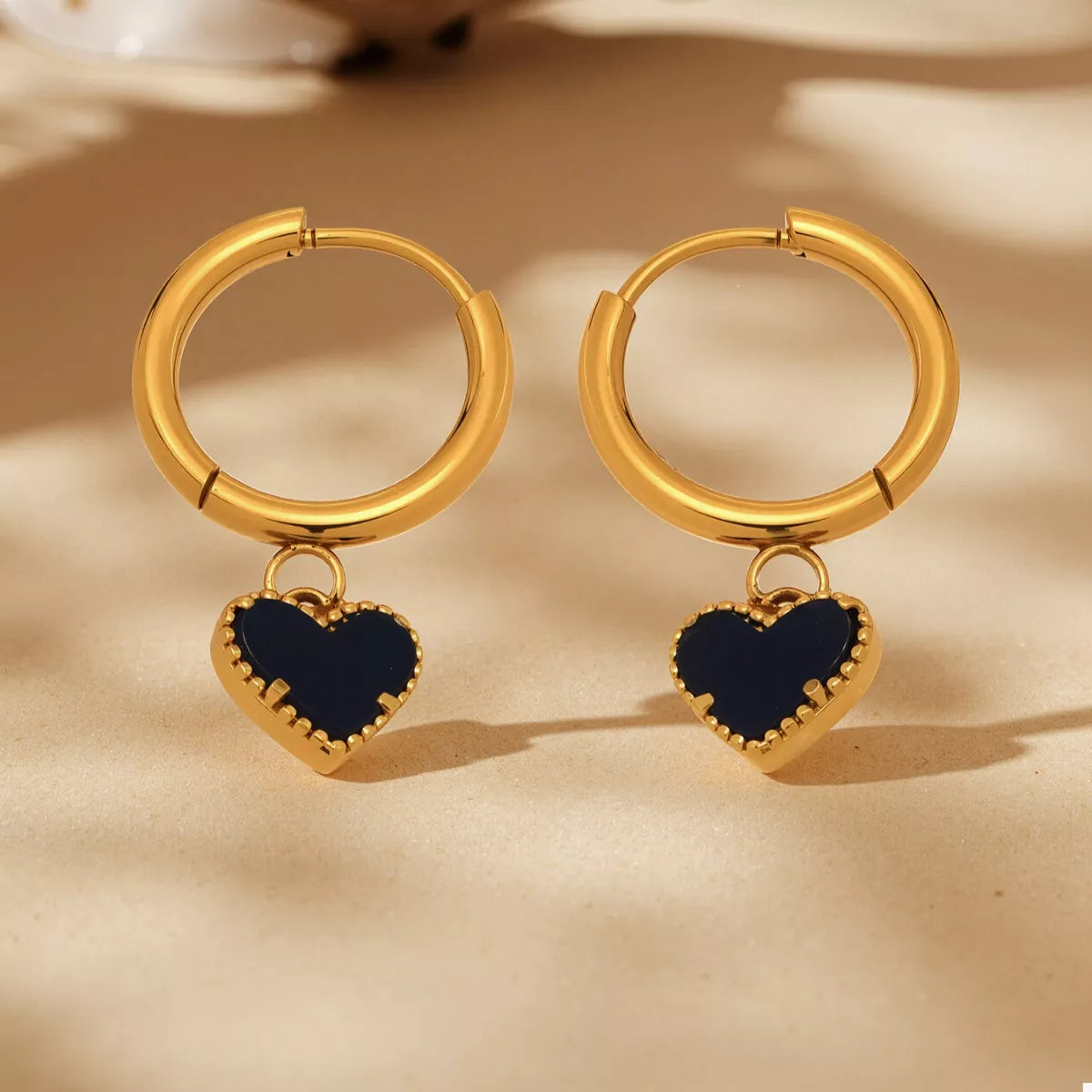 18K Gold-Plated Hoop Earrings with Heart Pendant