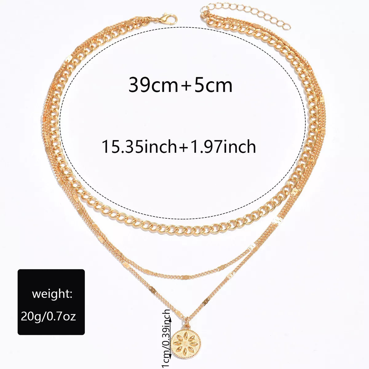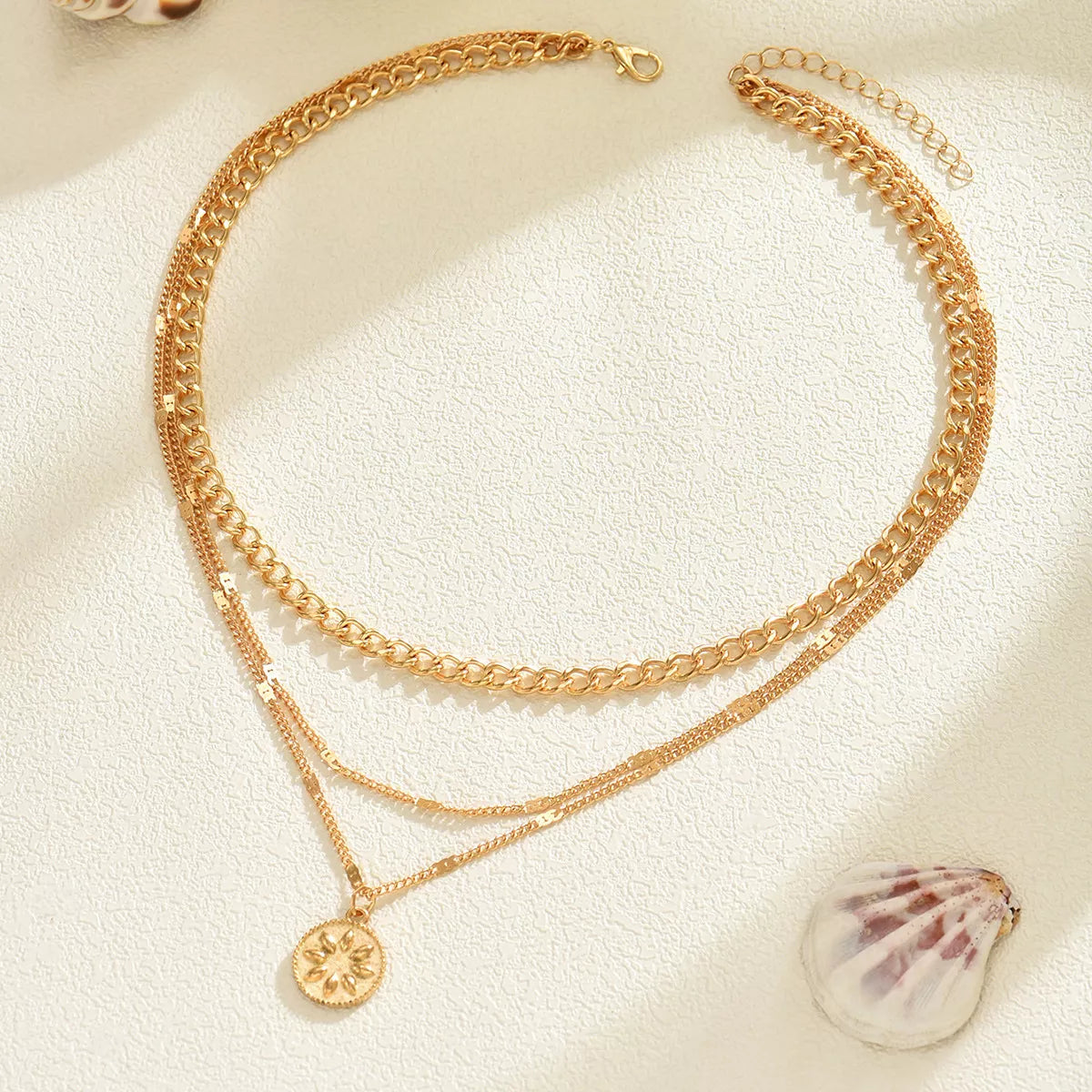 18K Gold-Plated Three Layered Pendant Necklace