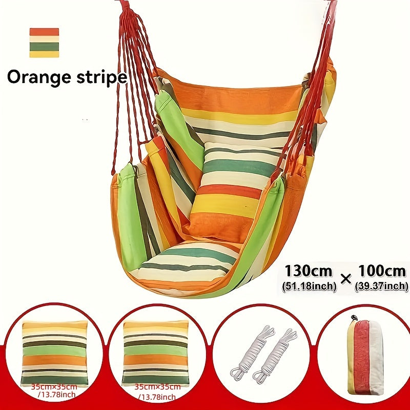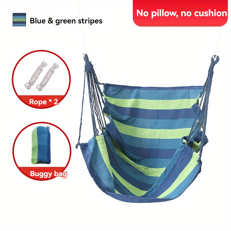 1pc Comfortable Canvas Hammock Chair with Cushion and Pillow - Durable Indoor/Outdoor Swing Seat for Garden, Patio, Camping, Home Relaxation