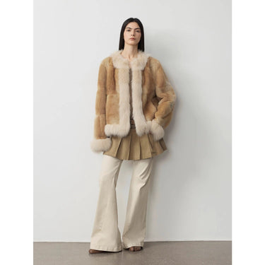 "Casual Gene" Wide Blue Mink Fur Patchwork With Contrasting Fox Fur Coat