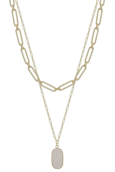 • Elegant Design: The two-layered metal chains create a refined look, while the stone pendant adds a touch of understated glamour.