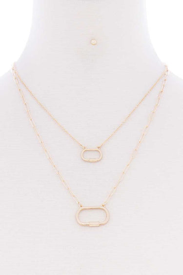1. 2 Layered Chain Oval Pendant Metal Necklace Earring Set: Embrace a modern and sophisticated look with this coordinated set.