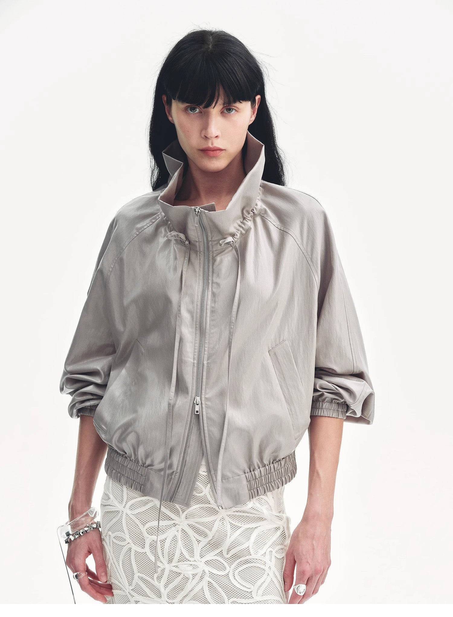 "Front Page Daily" Drawstring Raglan Sleeve Straight Collar Jacket Summer