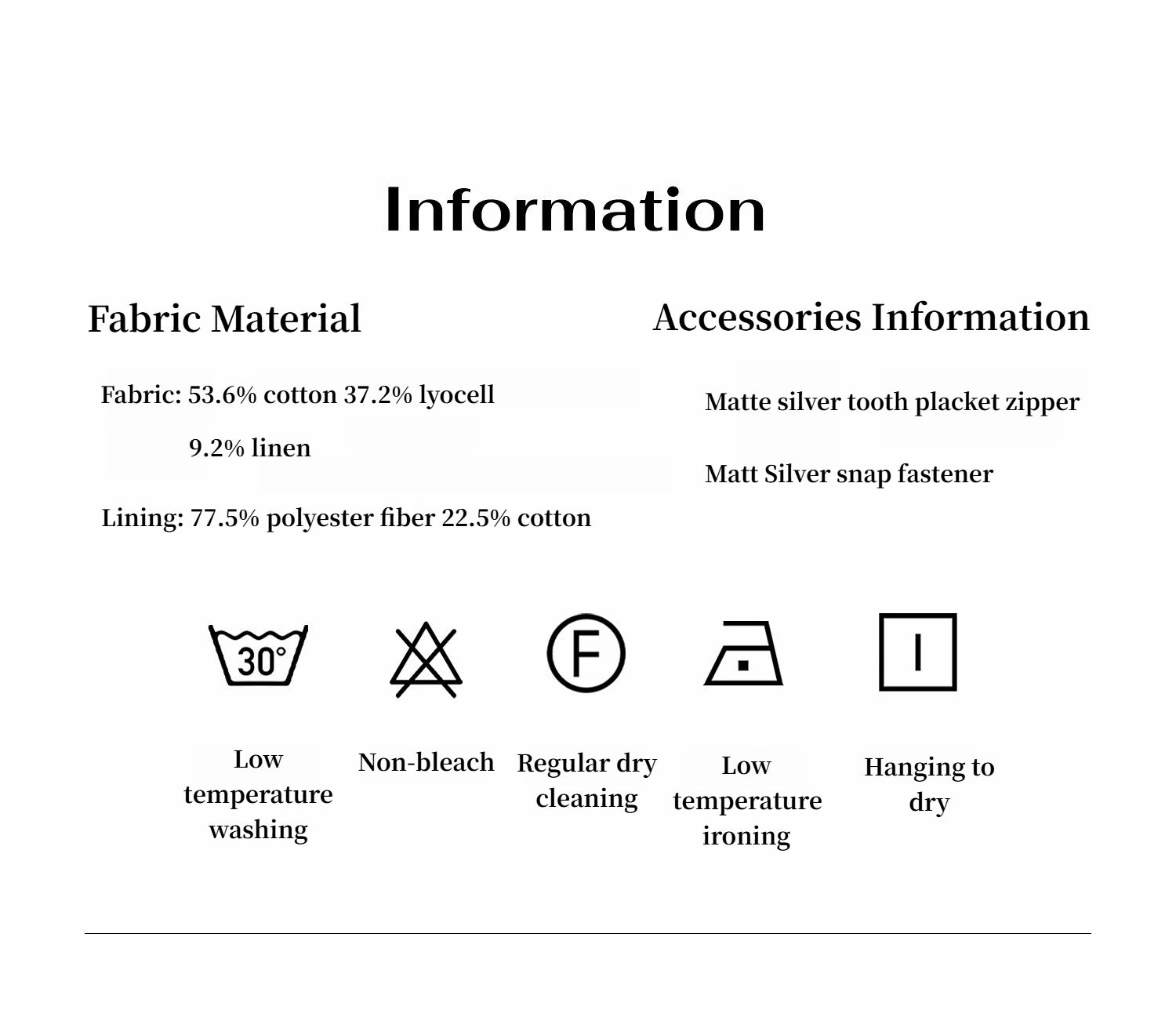 The cotton-linen fabric with a light paper-like coating process is comfortable and refreshing, featuring good breathability and moisture absorption, being extremely light and thin. It combines the comfort and flexibility of natural cotton and linen fibers with the minimalist aesthetics of a "paper-like" feel. The resin coating enhances its stiffness, making it less likely to deform or wrinkle, more durable, and easy to care for. An appropriate amount of Lyocell (Tencel) is added, which particularly excels in breathability, ensuring a refreshing and non-stuffy wearing experience.