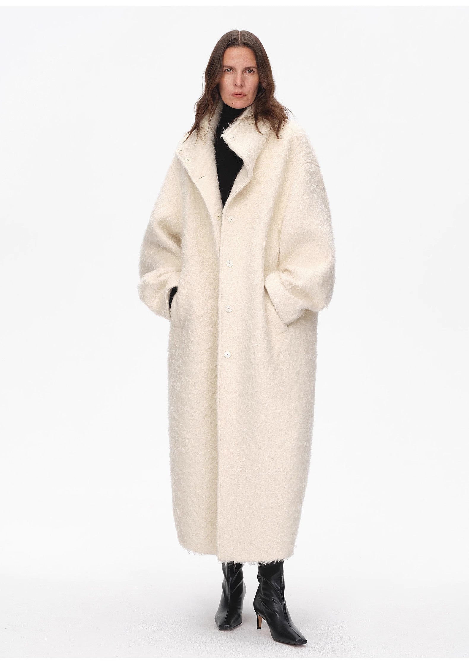 "Song of Snowland" Mohair Wool Stand Collar Coat